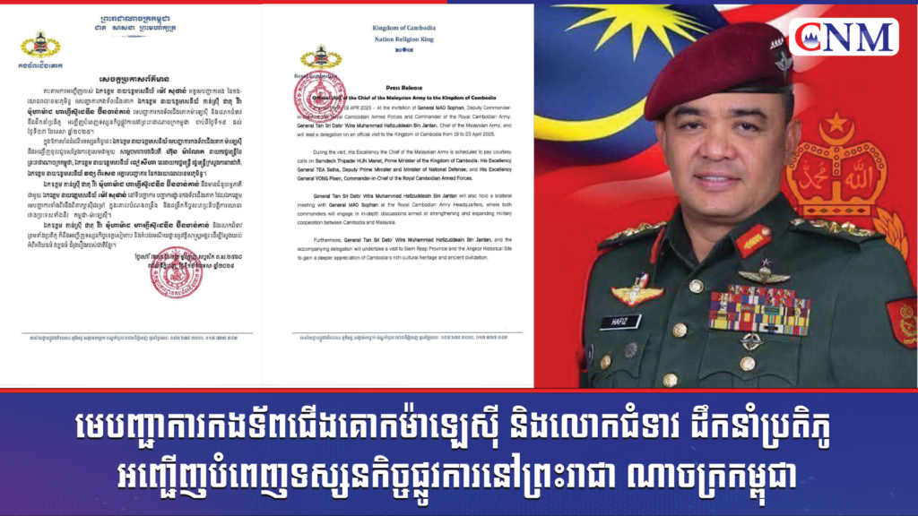 មេបញ្ជាការកងទ័ពជើងគោកម៉ាឡេស៊ី និងលោកជំទាវ ដឹកនាំប្រតិភូ អញ្ជើញបំពេញទស្សនកិច្ចផ្លូវការនៅព្រះរាជា ណាចក្រកម្ពុជា