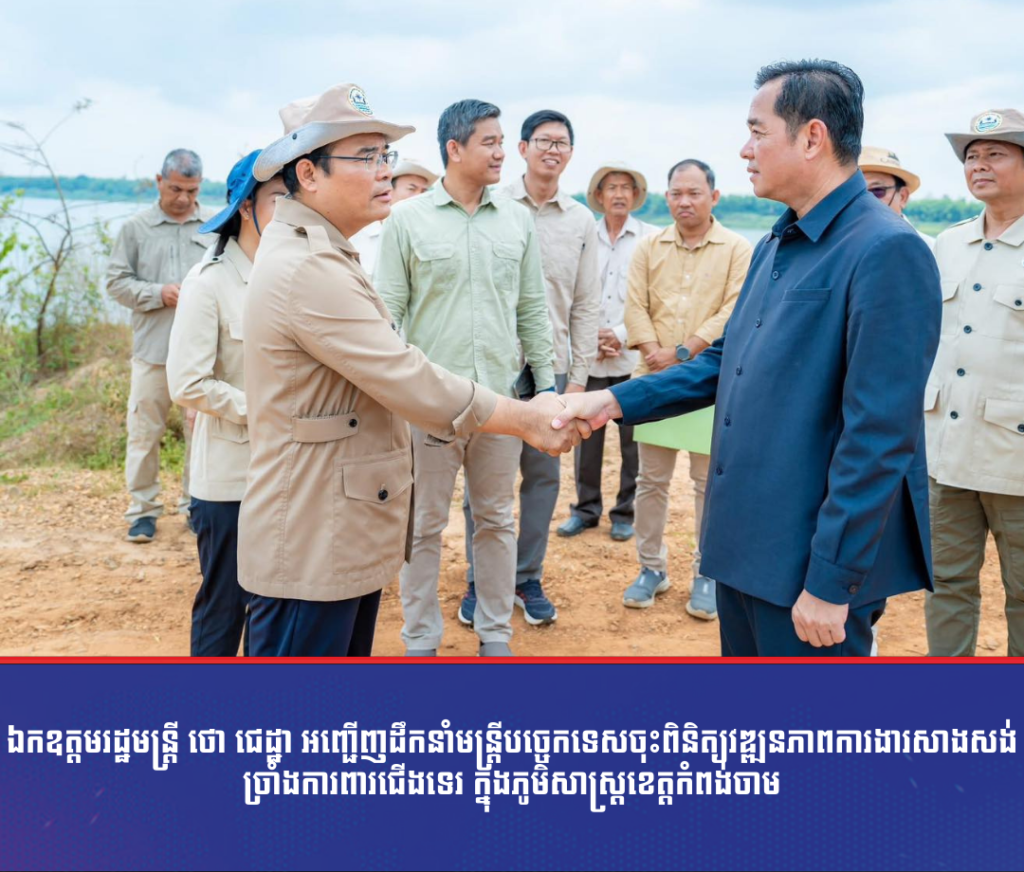ឯកឧត្តមរដ្ឋមន្ត្រី ថោ ជេដ្ឋា អញ្ជើញដឹកនាំមន្ត្រីបច្ចេកទេសចុះពិនិត្យវឌ្ឍនភាពការងារសាងសង់ច្រាំងការពារជើងទេរ ក្នុងភូមិសាស្ត្រខេត្តកំពង់ចាម