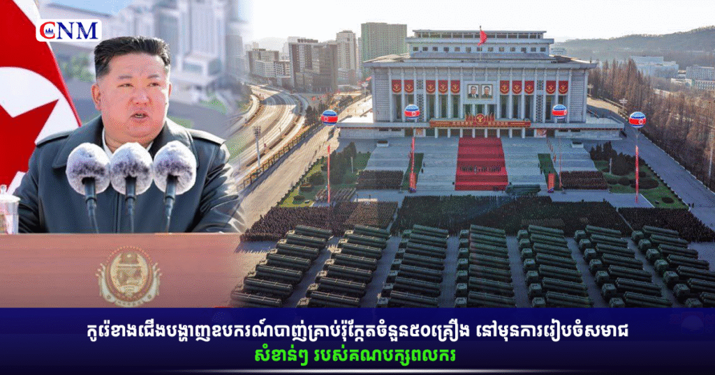 កូរ៉េខាងជើងបង្ហាញឧបករណ៍បាញ់គ្រាប់រ៉ុក្កែតចំនួន៥០គ្រឿង នៅមុនការរៀបចំសមាជ សំខាន់ៗ របស់គណបក្សពលករ