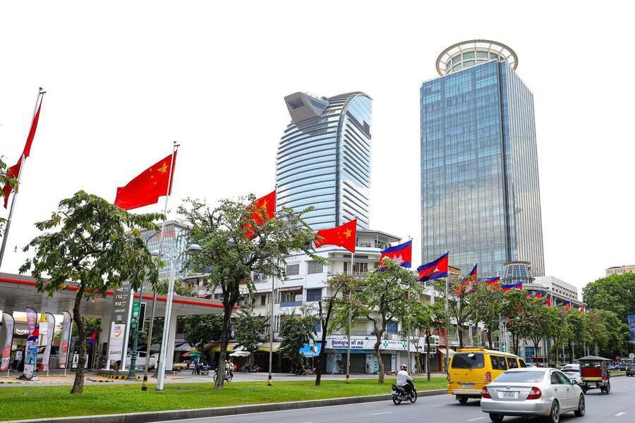 ការរៀបចំតាំងលម្អ ព្រះបរមឆាយាល័ក្ខណ៍ ព្រះករុណាជាអម្ចាស់ជីវិតលើត្បូង ព្រះបាទសម្តេចព្រះបរមនាថ នរោត្តម សីហមុនី ព្រះមហាក្សត្រ នៃព្រះរាជាណាចក្រកម្ពុជា និងឯកឧត្តម Xi Jinping ប្រធានាធិបតី នៃសាធារណរដ្ឋប្រជាមានិតចិន ព្រមទាំងទង់ជាតិនៃប្រទេសទាំងពីរ នៅតាមបណ្តាមហាវិថីនានា នៅរាជធានីភ្នំពេញ ដើម្បីត្រៀមទទួលស្វាគមន៍ដំណើរបំពេញទស្សនកិច្ចផ្លូវរដ្ឋ របស់ឯកឧត្តម Xi Jinping នៅថ្ងៃស្អែក ខណៈការរៀបចំតាំងលម្អនេះ បានរួចរាល់ហើយនារសៀលថ្ងៃទី១៦ ខែមេសា ឆ្នាំ២០២៥។