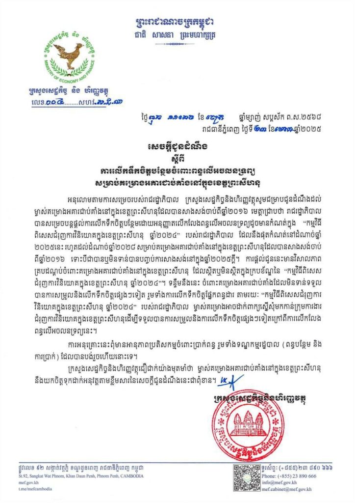 រាជរដ្ឋាភិបាល សម្រេចបន្តផ្តល់ការលើកទឹកចិត្តបន្ថែមដោយអនុញ្ញាតលើកលែងពន្ធលើអចលនទ្រព្យ
