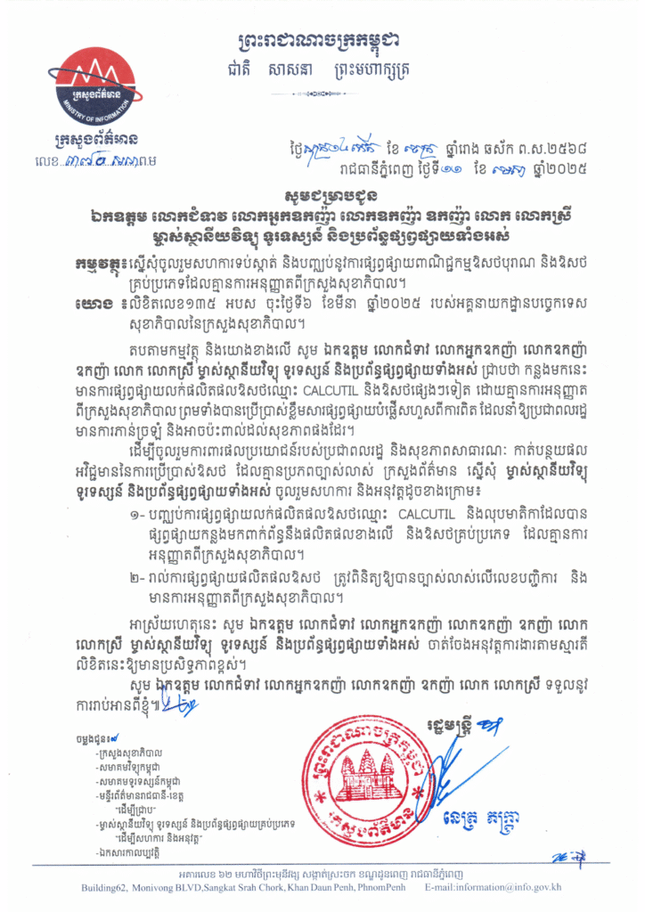 សូមជម្រាបជូន ឯកឧត្តម លោកជំទាវ លោកអ្នកឧកញ៉ា លោកឧកញ៉ា ឧកញ៉ា លោក លោកស្រី ម្ចាស់ស្ថានីយវិទ្យុ ទូរទស្សន៍