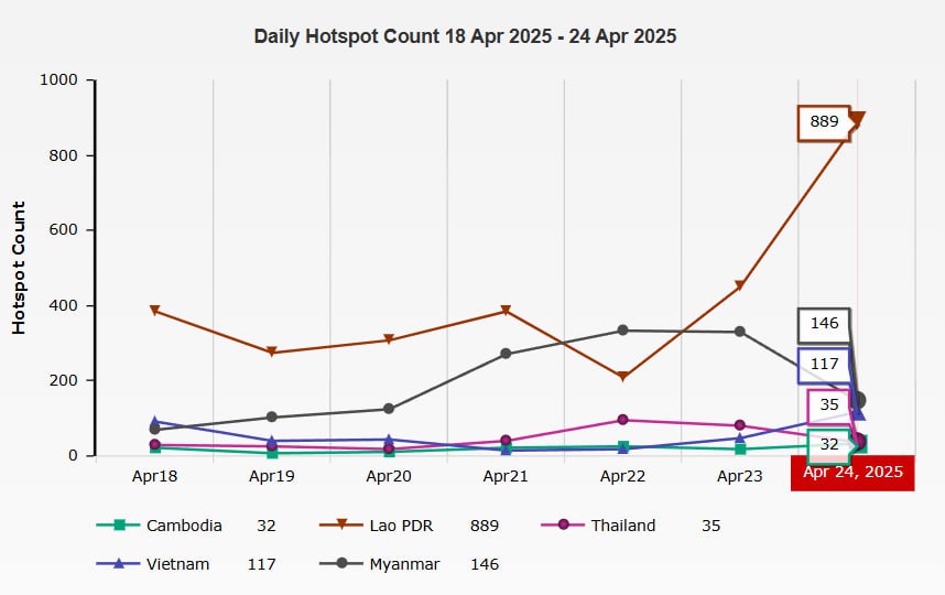 ក្រសួងបរិស្ថានសូមជូនដំណឹងអំពីស្ថានភាពគុណភាពខ្យល់នៅក្នុងព្រះរាជាណាចក្រកម្ពុជា សម្រាប់ថ្ងៃទី២៤ ខែមេសា ឆ្នាំ២០២៥ ចាប់ពីម៉ោង ៧ ព្រឹក ដល់ម៉ោង ៧ ព្រឹក ថ្ងៃទី២៥ ខែមេសា ឆ្នាំ២០២៥