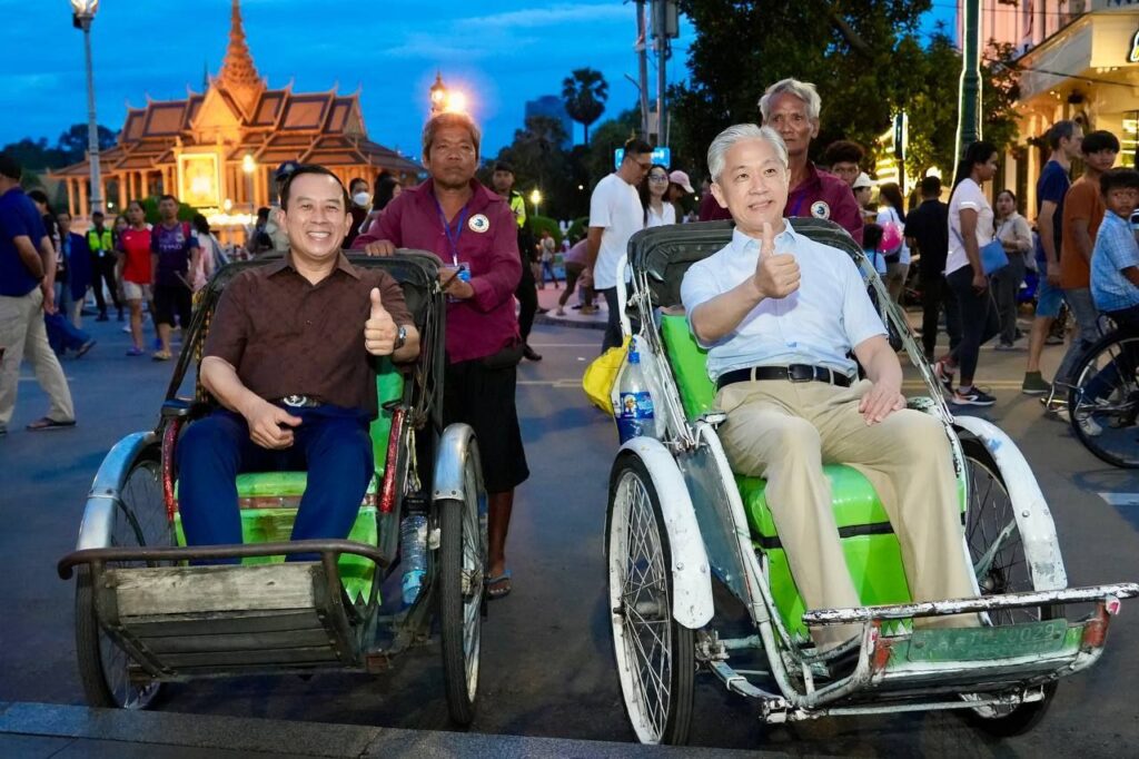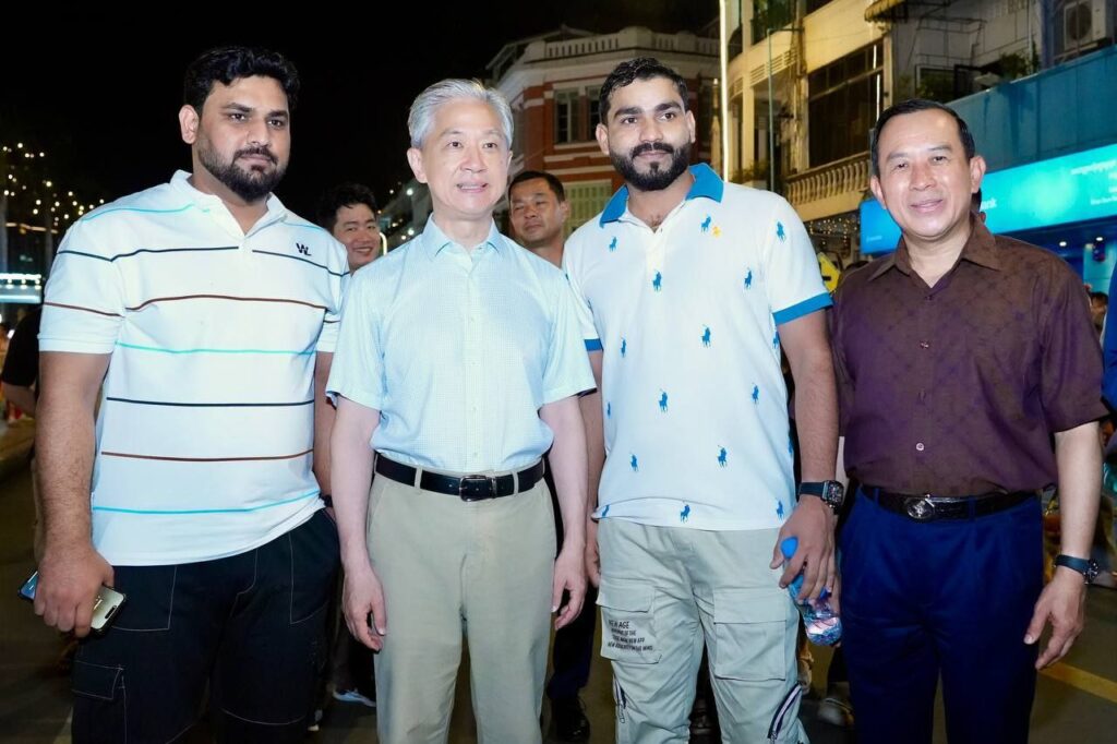 ឆ្លៀតក្នុងឱកាសនេះដែរ ឯកឧត្តមរដ្ឋមន្រ្តី និងឯកឧត្តមឯកអគ្គរដ្ឋទូតចិន បានជួបសំណេះសំណាល និងថតរូបអនុស្សាវីរិយ៍ជាមួយបងប្អូនអាជិវករ ប្រជាពលរដ្ឋខ្មែរ និងភ្ញៀវអន្តរជាតិចំរុះសាសន៍ដែលមកដើរលេងកម្សាន្តនៅផ្លូវថ្មើរជើង (Walk Street) ដ៏រស់រវើក សកម្មភាពចំរុះ និងមានបរិយាកាសស្រស់ស្រាយក្រោមជំនោរខ្យល់ទន្លេចតុមុខដ៏ត្រជាក់ និងបរិសុទ្ធ ដោយក្តីសោមន្សរីករាយ និងស្និទ្ធិស្នាលដែលជាមិត្តភាពដ៏រឹងមាំមិនអាចបំបែកបានឡើយ៕