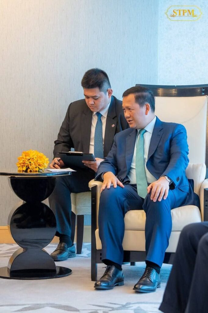 សម្តេចមហាបវរធិបតី ហ៊ុន ម៉ាណែត ជួបពិភាក្សាការងារជាមួយ លោក OKUMURA Yusuke ប្រធានក្រុមហ៊ុន KOUA SHOJI Co., Ltd