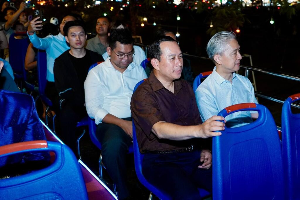 ឯកឧត្តមរដ្ឋមន្ត្រី ហួត ហាក់ រួមជាមួយឯកឧត្តម វ៉ាង វិនពីន (Wang Wenbin) បានអញ្ជើញជិះឡានក្រុងអត់ដំបូលគយគន់ទេសភាពនៅរាជធានីភ្នំពេញ