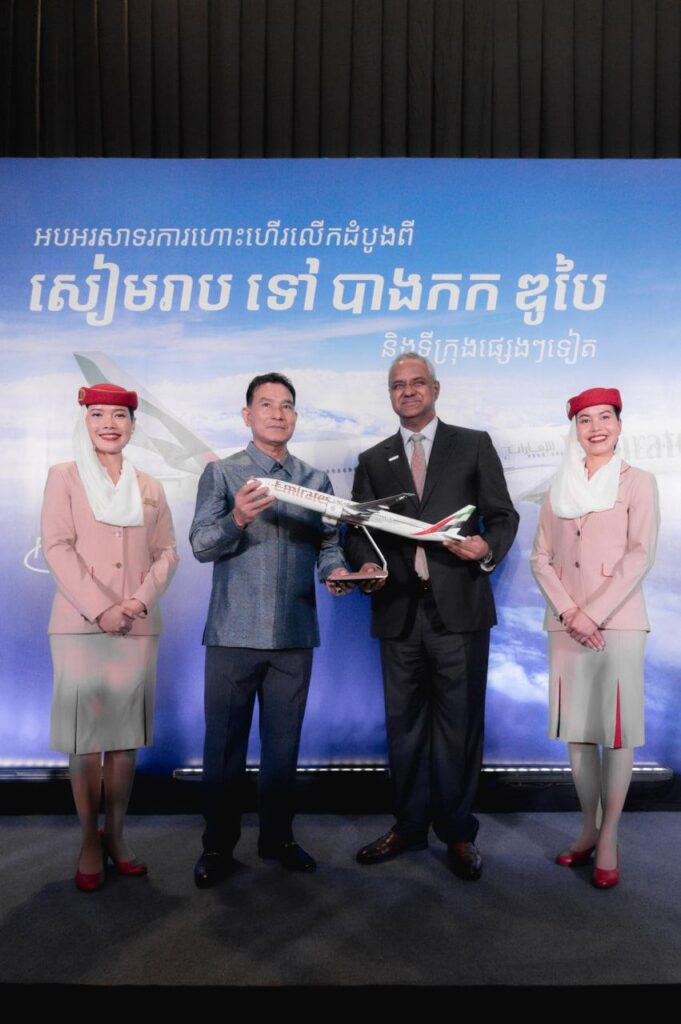 គណៈប្រតិភូស្វាគមន៍រួមមានបណ្ឌិត ម៉ៅ ហាវណ្ណាល់ រដ្ឋមន្ត្រីទទួលបន្ទុករដ្ឋលេខាធិការដ្ឋានអាកាសចរណ៍ស៊ីវិល និងមន្ត្រីជាន់ខ្ពស់នៃរាជរដ្ឋាភិបាលកម្ពុជាជាច្រើនរូបទៀត។ លោក កាទើ មហាំម៉ាត់ ណោសស្រ៊ី រដ្ឋលេខាធិការក្រសួងទេសចរណ៍, លោកស្រី សូ ស្រីម៉ិច រដ្ឋលេខាធិការក្រសួងពាណិជ្ជកម្ម, លោក ង៉ូវ សេងកាក់ អភិបាលរងខេត្តសៀមរាប, លោក Jaber AlShehhi ប្រធានផ្នែកកិច្ចការសេដ្ឋកិច្ចនៃស្ថានទូតអេមីរ៉ាតអារ៉ាប់រួមប្រចាំព្រះរាជាណាចក្រថៃ និងព្រះរាជាណាចក្រកម្ពុជា និងអ្នកឧកញ៉ា សៀ ឫទ្ធី អគ្គនាយកក្រុមហ៊ុនវើលប៊្រីដគ្រុប ក៏បានចូលរួមជាភ្ញៀវកិត្តិយស។