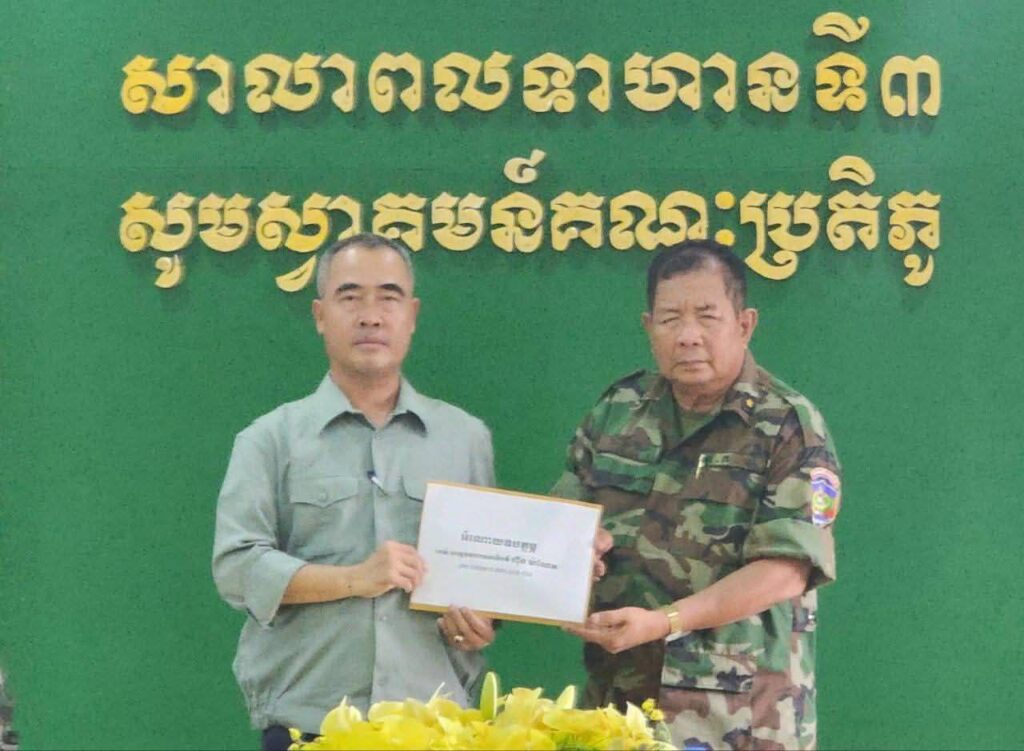 អំណោយឧបត្ថម្ភដ៏ថ្លៃថ្លា របស់សម្តេចមហាបវរធិបតី ហ៊ុន ម៉ាណែត និងលោកជំទាវត្រូវបានផ្តល់ ជូនសាលាពលទាហានទី៣ និងមជ្ឈមណ្ឌលហ្វឹកហ្វឺនកងទ័ពជើងគោក