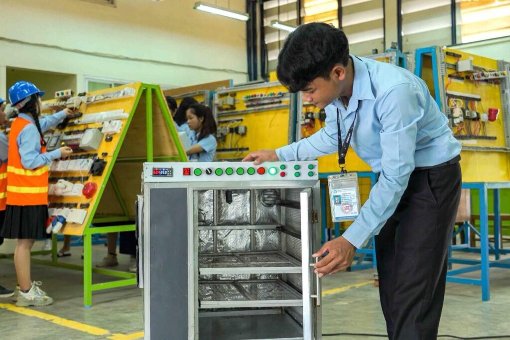 វិទ្យាស្ថានអភិវឌ្ឍន៍មុខជំនាញកម្ពុជា-ថៃ ត្រៀមខ្លួនរួចរាល់ក្នុងការយកស្នាដៃរបស់និស្សិតចំនួន២ប្រភេទរួមមាន ម៉ាស៊ីនចិតដូងខ្ចី និងម៉ាស៊ីនសម្ងួតផ្លែឈើ សម្រាប់ដាក់បង្ហាញដល់សាធារណជនក្នុងឱកាសទិវាជាតិអប់រំបណ្តុះបណ្តាលបច្ចេកទេសនិងវិជ្ជាជីវៈ (TVET Day) លើកទី៨ ឆ្នាំ២០២៥ ក្រោមប្រធានបទ «ការអប់រំបណ្តុះបណ្តាលបច្ចេកទេសនិងវិជ្ជាជីវៈ បង្កើតឱកាសការងារ សាងក្តីសង្ឃឹមដល់យុវជន» នៅមជ្ឈមណ្ឌលសន្និបាត និងពិព័រណ៍កោះពេជ្រ រាជធានីភ្នំពេញ ថ្ងៃទី១៥-១៦ ខែមិថុនា ឆ្នាំ២០២៥។