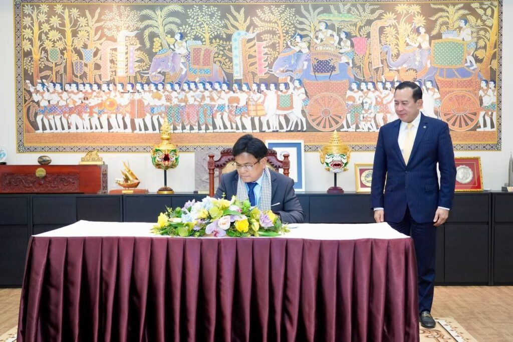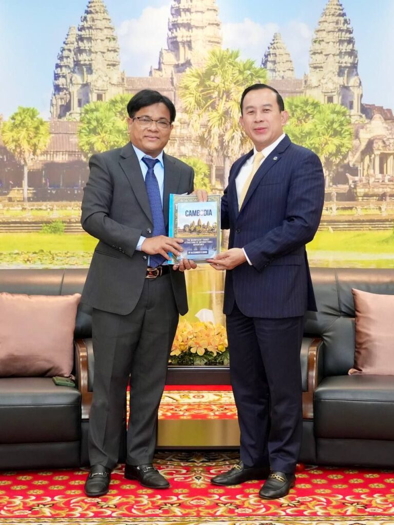ស្នើសុំអនុសាសន៍ណែនាំពាក់ព័ន្ធនឹងវិស័យទេសចរណ៍កម្ពុជា ព្រមទាំងប្រគល់ជូនសៀវភៅ TRAVEL EXPLORATION OF CAMBODIA ដែលសៀវភៅនេះ ផ្តោតលើការផ្សព្វផ្សាយសក្តានុពលទេសចរណ៍ វប្បធម៌ ប្រវត្តិសាស្ត្រ ធម្មជាតិ និងទនៀមទំលាប់ប្រពៃណី ព្រមទាំងការអភិវឌ្ឍរបស់វិស័យទេសចរណ៍កម្ពុជាទៅកាន់ពិភពលោក។