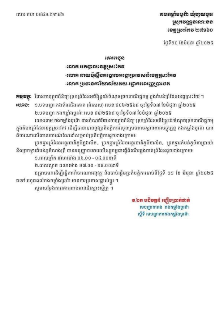 កម្លាំងជំនាញកម្ពុជា-ថៃ ឯកភាពសម្រួលដល់ការចេញ ចូល របស់សិស្សានុសិស្សកម្ពុជា ដែលស្នាក់នៅក្នុងផ្សាររោងគ្លឿ ឱ្យបានចូលចេញនៅវេលាម៉ោង ០៦.០០នាទីព្រឹក ទាំងសិស្សានុសិស្ស