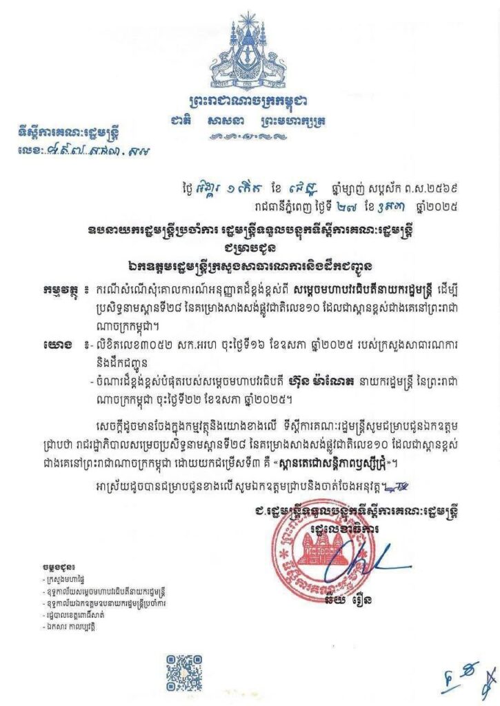 ស្ពានលេខ២៨ បានបើកឲ្យប្រជាពលរដ្ឋឆ្លងកាត់ជាអចិន្ត្រៃយ៍ ចាប់ពីថ្ងៃទី១៥ ខែឧសភា ឆ្នាំ២០២៥មក។