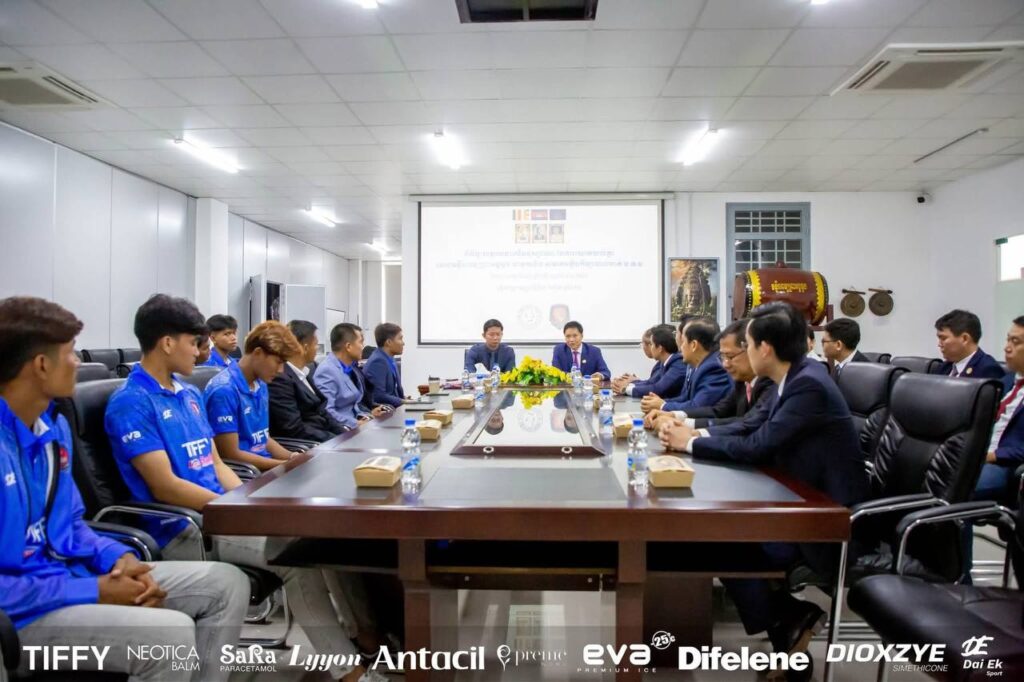 បង្វឹក កីឡាករ បានអញ្ជើញចូលរួមក្នុង ពិធីចុះអនុស្សារណៈនៃការយោគយល់គ្នា រវាងសមាគកីឡាបាល់ទាត់កងយោធលខេមរភូមិន្ទ ជាមួយនិងមន្ទីរពេទ្យអង្គដួង តំណាងដោយ ឯកឧត្តម សាស្ត្រាចារ្យរង លូ លីឃាង នាយក