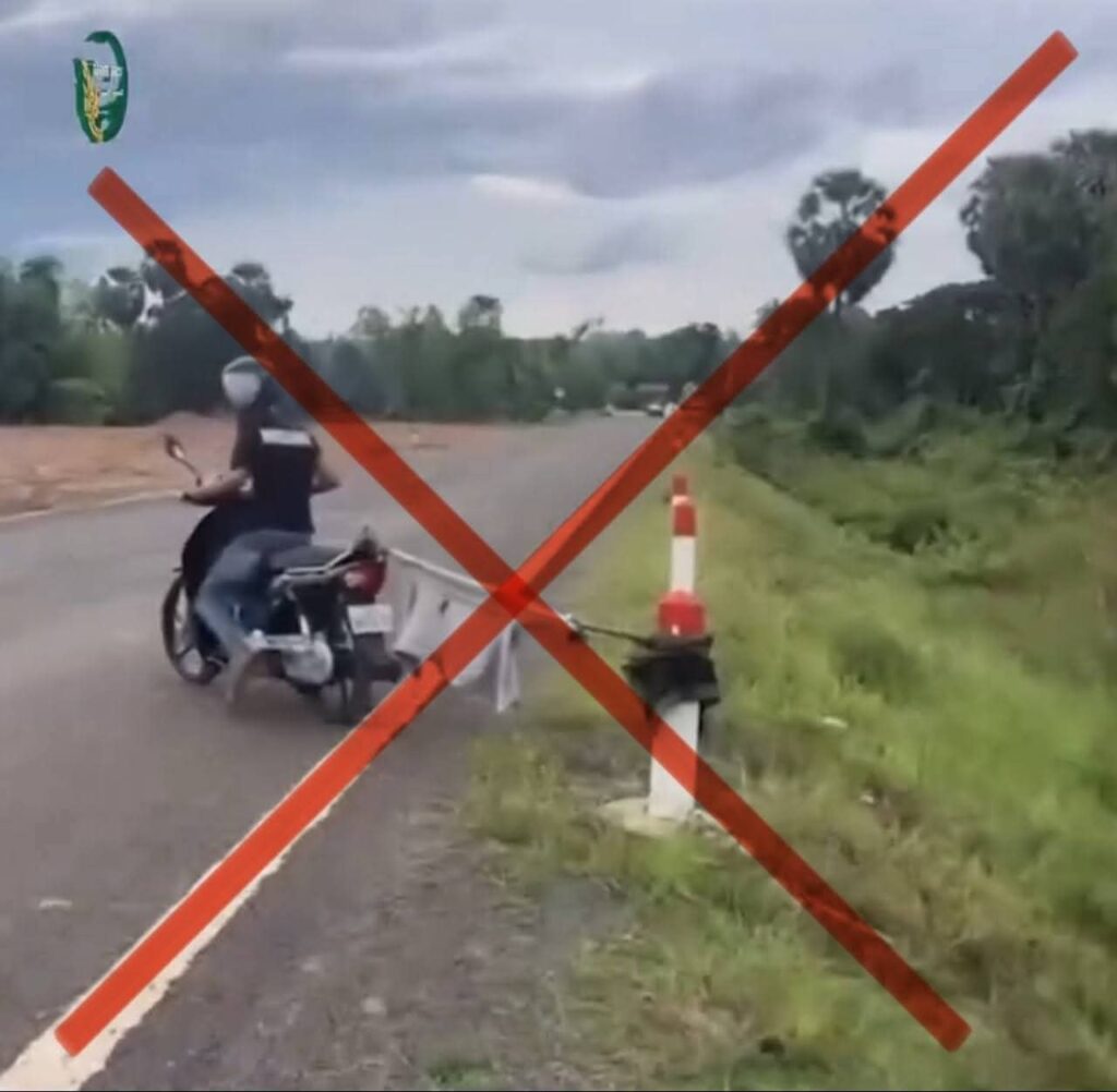 (ដូចក្នុងរូប) បានធ្វើសកម្មភាពបំផ្លិចបំផ្លាញបរិក្ខារផ្លូវថ្នល់ ដែលជាទ្រព្យ សម្បត្តិសាធារណៈរបស់រដ្ឋ ដោយថតវីដេអូ និងបង្ហោះជាសាធារណៈក្នុងចេតនាលេងសើចខុសទំនង និងជាទង្វើល្មើសច្បាប់ ដែលមិនអាចអត់ឱនឱ្យបាន។