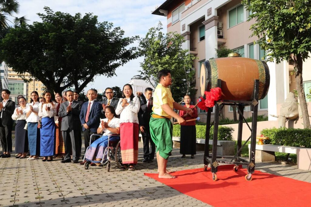 ថ្នាក់ដឹកនាំ និងមន្ត្រីរាជការគ្រប់លំដាប់ថ្នាក់នៃក្រសួងទេសចរណ៍ បានរៀបចំពិធីទូងស្គរអបអរសាទរ ក្នុងឱកាសនៃការចុះ បូជនីយដ្ឋានចងចាំនៃកម្ពុជា