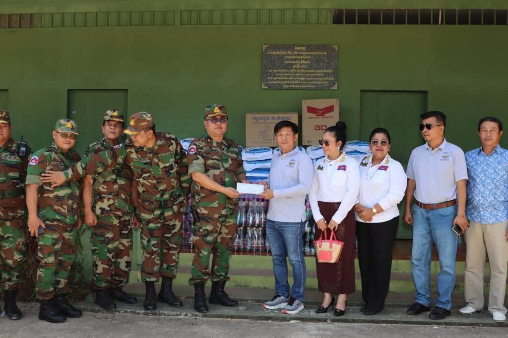លោកឧកញ៉ា អ៊ឹង វណ្ណ ម៉ៅ ប្រធានសភាពាណិជ្ជកម្ម ខេត្តបន្ទាយមានជ័យ នាំយកអំណោយមាន អង្ករ ទឹកសុទ្ធ គ្រឿងឧបភោគបរិភោគ ផ្តល់ជូនដល់កងកម្លាំងជួរមុខ