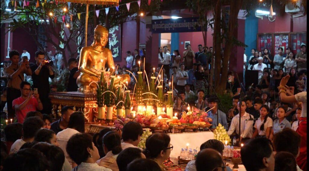 ម៉ោង ៦:៣០ នាទី ដល់ម៉ោង ១០:០០ នាទីយប់ នៅសាកលវិទ្យាល័យភូមិន្ទវិចិត្រសិល្បៈ (ទីតាំងចាស់ ក្រោយសារមន្ទីរជាតិ) បានរៀបចំពិធីថ្វាយភ្លេង និងរបាំបួងសួងសុំពរជ័យជូនដល់វីរកងទ័ពជួរមុខ។