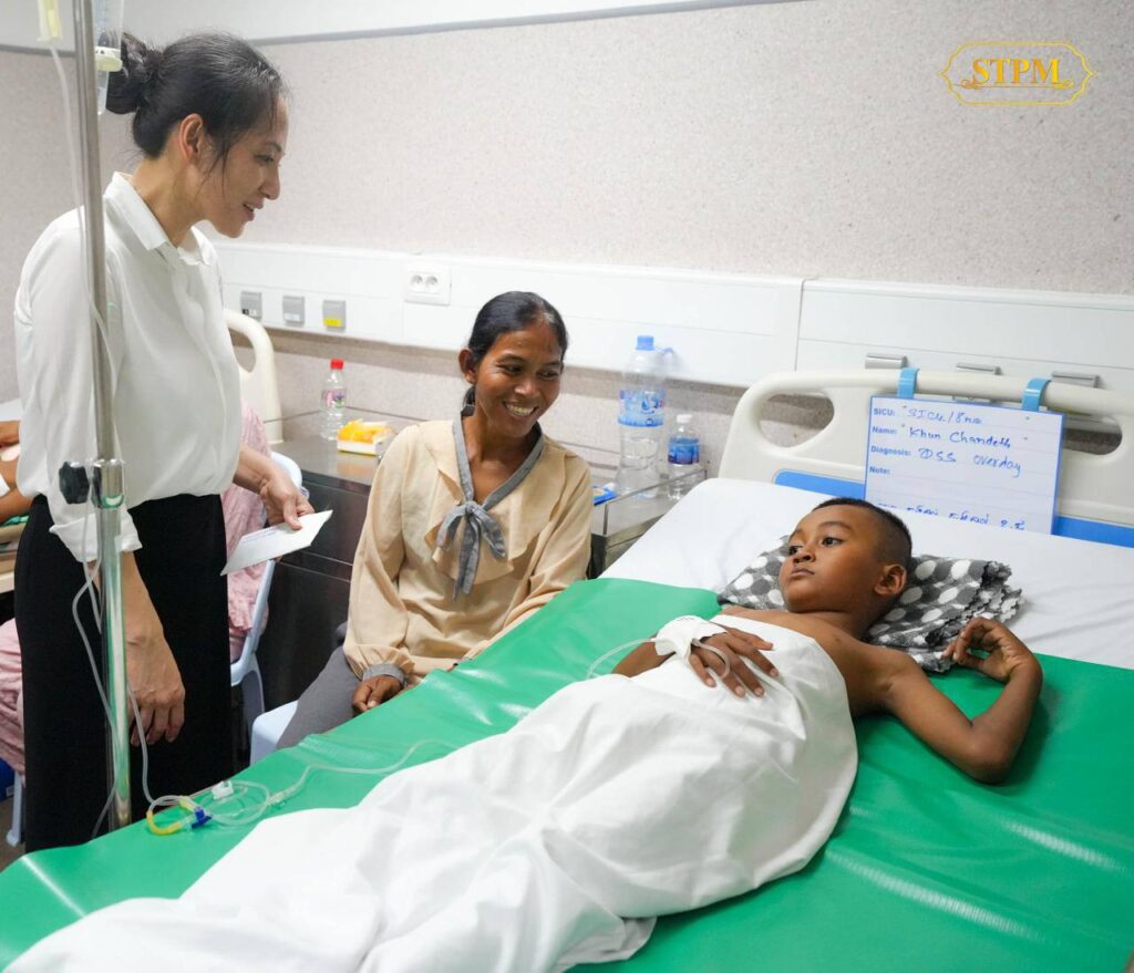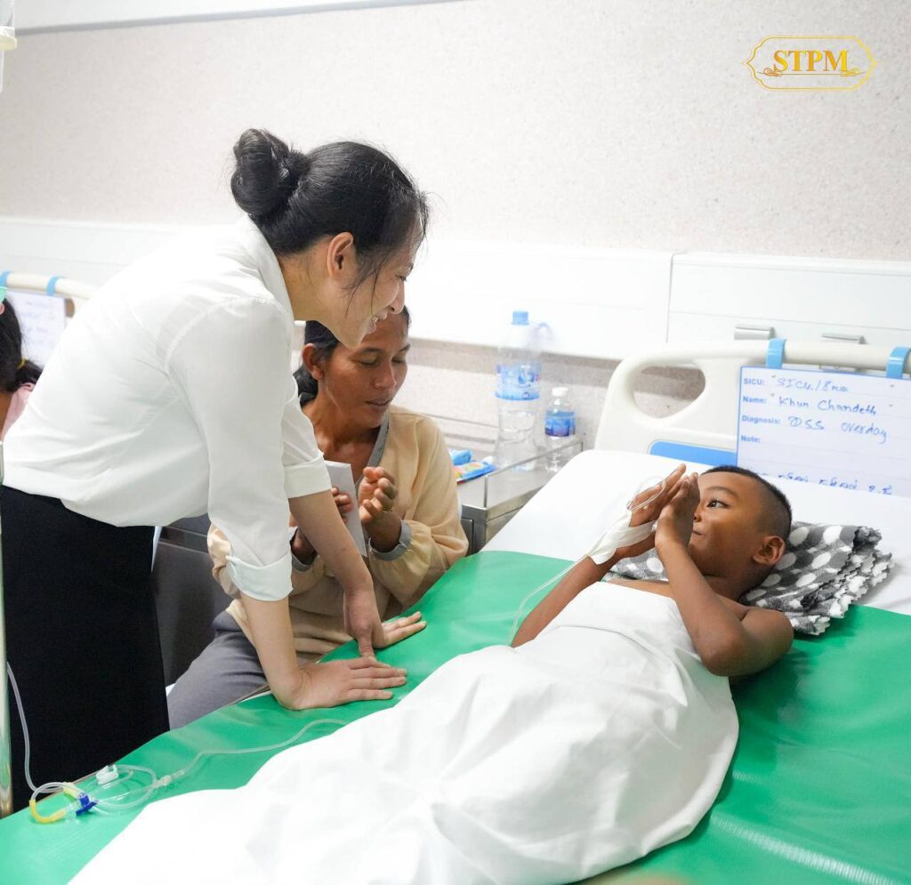 លោកជំទាវបណ្ឌិត ពេជ ចន្ទមុន្នី ហ៊ុនម៉ាណែត បានឆ្លៀតចូលពិនិត្យមើលស្ថានភាពរងរបួសរបស់ កុមារា ធី គឹម