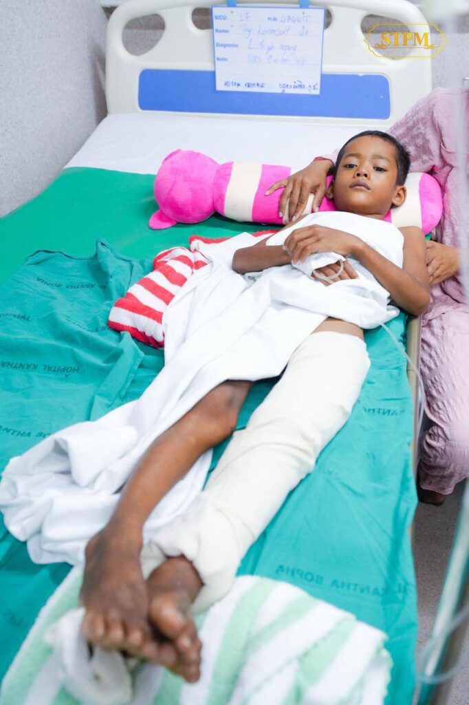 ស្ត្រីទី១នៃកម្ពុជា ពិនិត្យស្ថានភាព កុមារាត្រូវគ្រាប់បែករបស់ថៃ ចំឆ្អឹងត្រគាកខាងឆ្វេងកំពុងសំរាកព្យាបាល