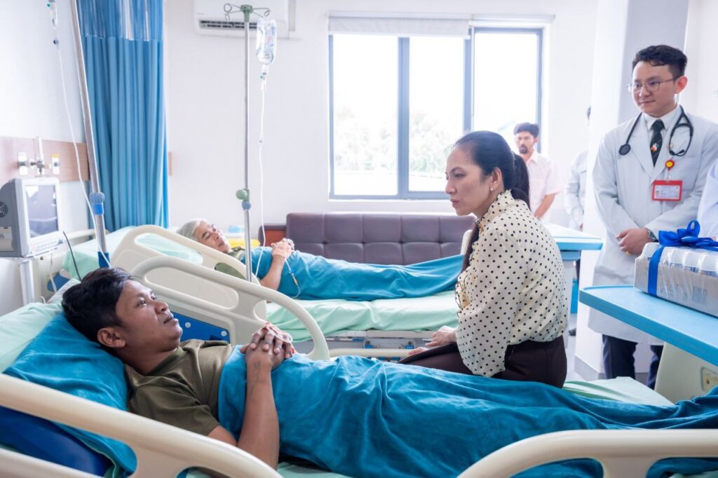 លោកជំទាវបណ្ឌិត ពេជ ចន្ទមុន្នី អញ្ជើញចុះសួរសុខទុក្ខយុទ្ធជនរងរបួសនៅតាមមន្ទីរពេទ្យក្នុងរាជធានីភ្នំពេញចំនួន៤៣នាក់