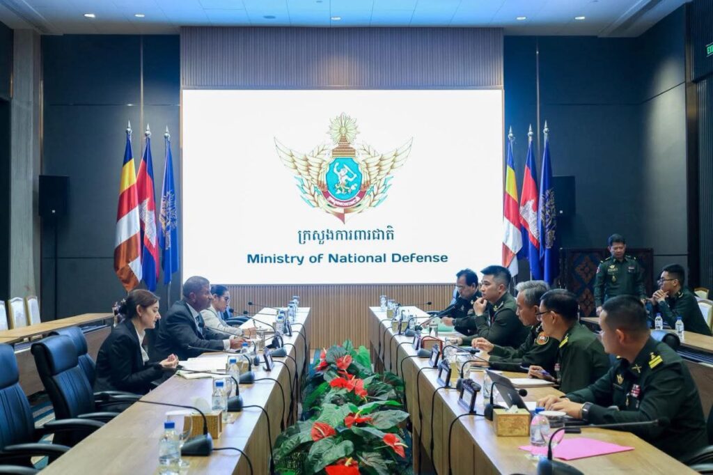 ឯកឧត្តម ឧត្តមសេនីយ៍ឯក រ៉ាត់ ដារ៉ារ័ត្ន រដ្ឋលេខាធិការ ក្រសួងការពារជាតិ បានអនុញ្ញាតឱ្យឯកឧត្តម Lloyd Gillett ប្រតិភូកងទ័ពថ្នាក់តំបន់ នៃគណៈកម្មាធិការកាកបាទក្រហមអន្តរជាតិចូលជួបសម្តែងការគួរសម និងពិភាក្សាការងារ។