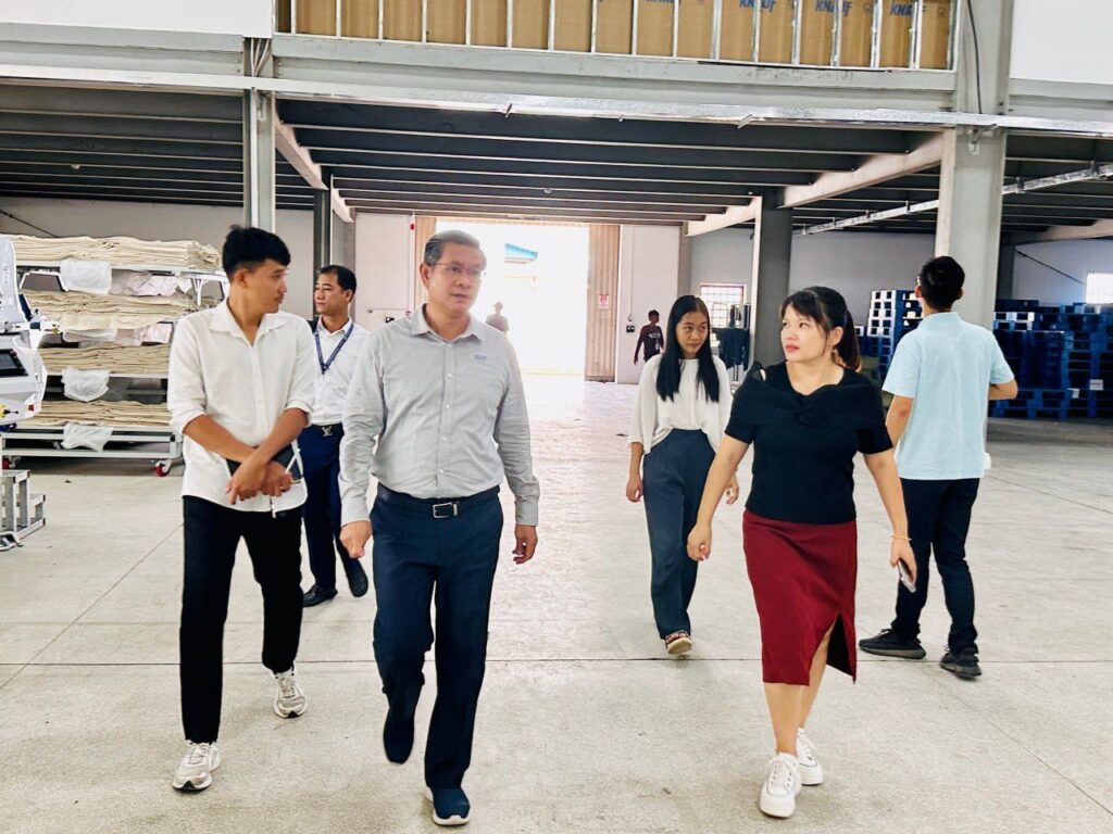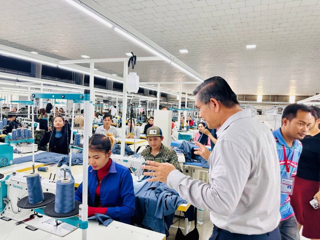 ឯកឧត្តម ម៉ុល វិបុល អនុរដ្ឋលេខាធិការក្រសួងការងារ និងបណ្ដុះបណ្ដាលវិជ្ជាជីវៈ បានដឹកនាំ ក្រុមការងារសម្របសម្រួលផ្គូរផ្គងទីផ្សារការងារជូនពលករ នៅក្នុងក្រុមហ៊ុន សឹង ឡុង ជាន (អេសអិលជេ) អឺភែរឹល (ខេមបូឌា) ស្ថិត