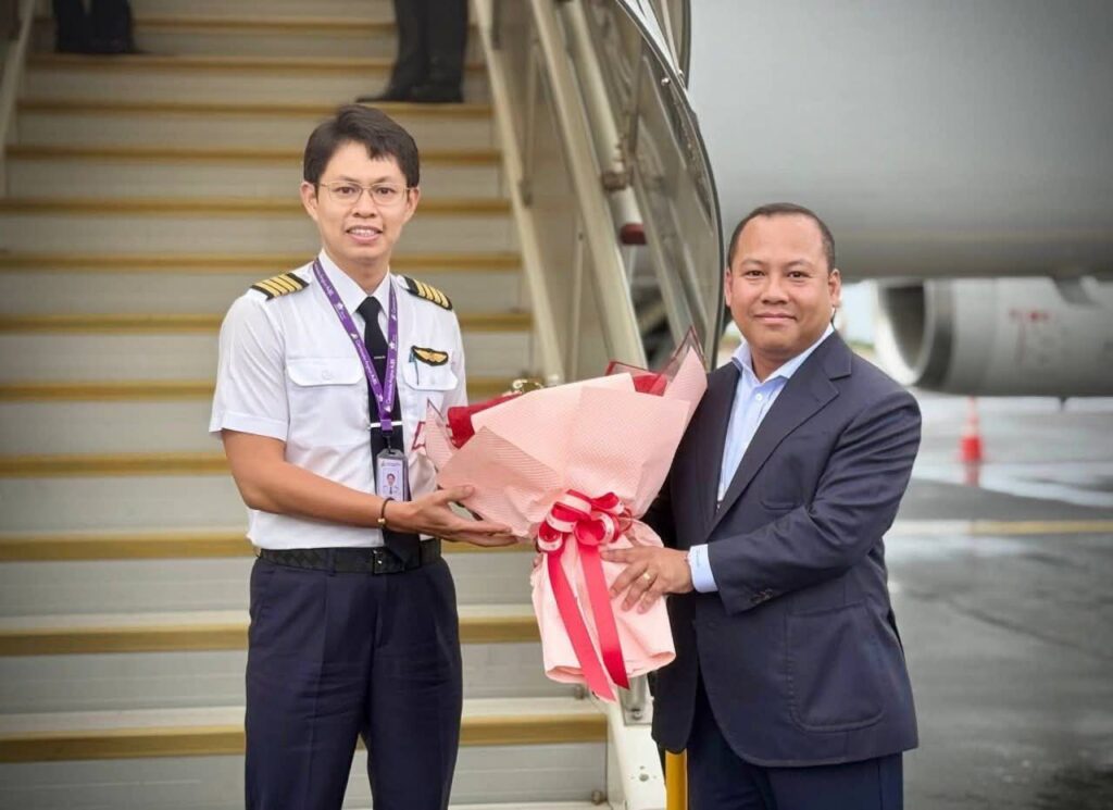 ជើងហោះហើរនេះ ជាជើងហោះហើរត្រង់ទី១ ដំណើរការដោយក្រុមហ៊ុនអាកាសចរជាតិ (Air Cambodia) ដែលបាននាំយកអ្នកដំណើរសរុបចំនួន ១៤៨នាក់ បានចុះចតដោយសុវត្ថិភាពនាម៉ោង ៦ និង៣០ នាទីព្រឹក នាព្រឹកថ្ងៃទី២៦ ខែកញ្ញា ឆ្នាំ២០២៥។