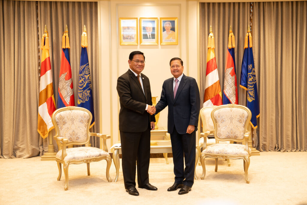 (Phnom Penh): On Tuesday morning, October 7, 2025, H.E. Santebindith Neth Savoeun, Deputy Prime Minister, high representative of Samdech Moha Bovor Thipadei Hun Manet, Prime Minister of the Kingdom of Cambodia, received a courtesy call by a Senior Delegation of Sarawak, Malaysia, led by H.E. Datuk Dr. Abdul Rahman Junaidi, Deputy Minister in Premier’s Department of Sarawak, representative of H.E. Tan Sri Dr. Abang Zohari Tun Openg, Premier of Sarawak, which was held at the Courtesy Call Hall of H.E. Santebindith, Friendship Building, the Office of the Council of Ministers.