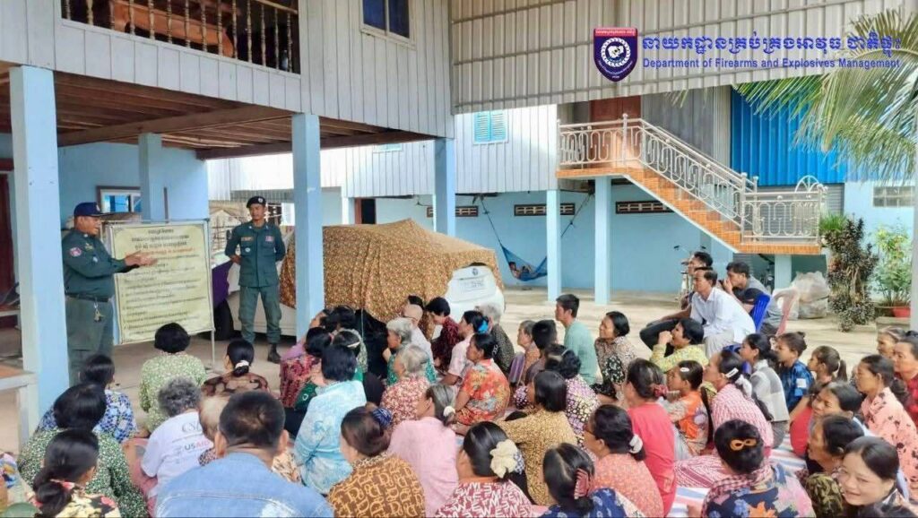 ការតាមគោលដៅនានា និងបានលើកឡើងពីសកម្មភាពរបស់ មន្រ្តីនគរបាលជំនាញគ្រប់គ្រងអាវុធជាតិផ្ទុះ តាមបណ្ដារស្នងការដ្ឋាន នគរបាលរាជធានី-ខេត្ត សហការជាមួយមន្រ្តីប៉ុស្តិ៍នគរបាលរដ្ឋបាល បានចុះផ្សព្វផ្សាយគោលនយោបាយភូមិ-ឃុំ-សង្កាត់មានសុវត្ថិភាព តាមខ្នងផ្ទះ និងតាមរយៈវេទិកាសាធារណ: ផ្សព្វផ្សាយការយល់ដឹងអំពីមីន និងសំណល់យុទ្ធភណ្ឌសង្រ្គាម ផងដែរ ៕
