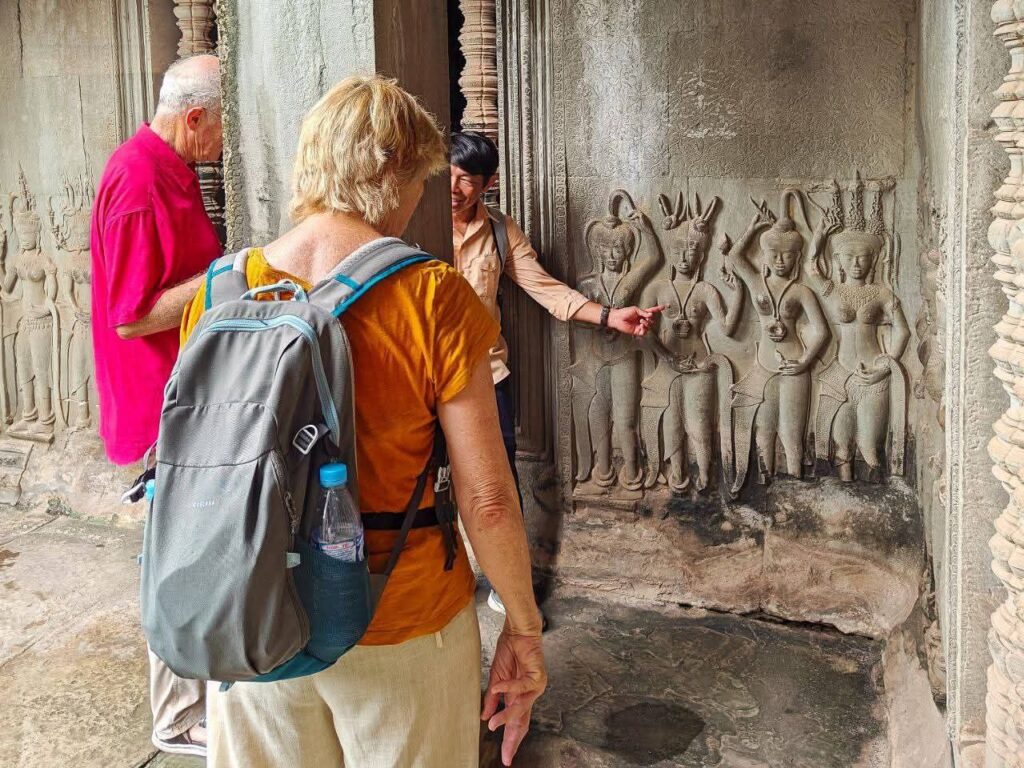 ចម្លាក់ទេពអប្សរ ដែលមានអាយុកាលជិត១ពាន់ឆ្នាំ នៅប្រសាទអង្គរវត្ត បង្អួតសម្រស់ជាមួយភ្ញៀវទេសចរ