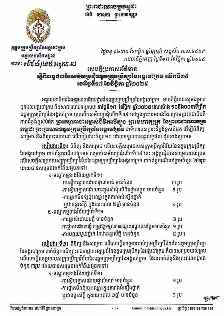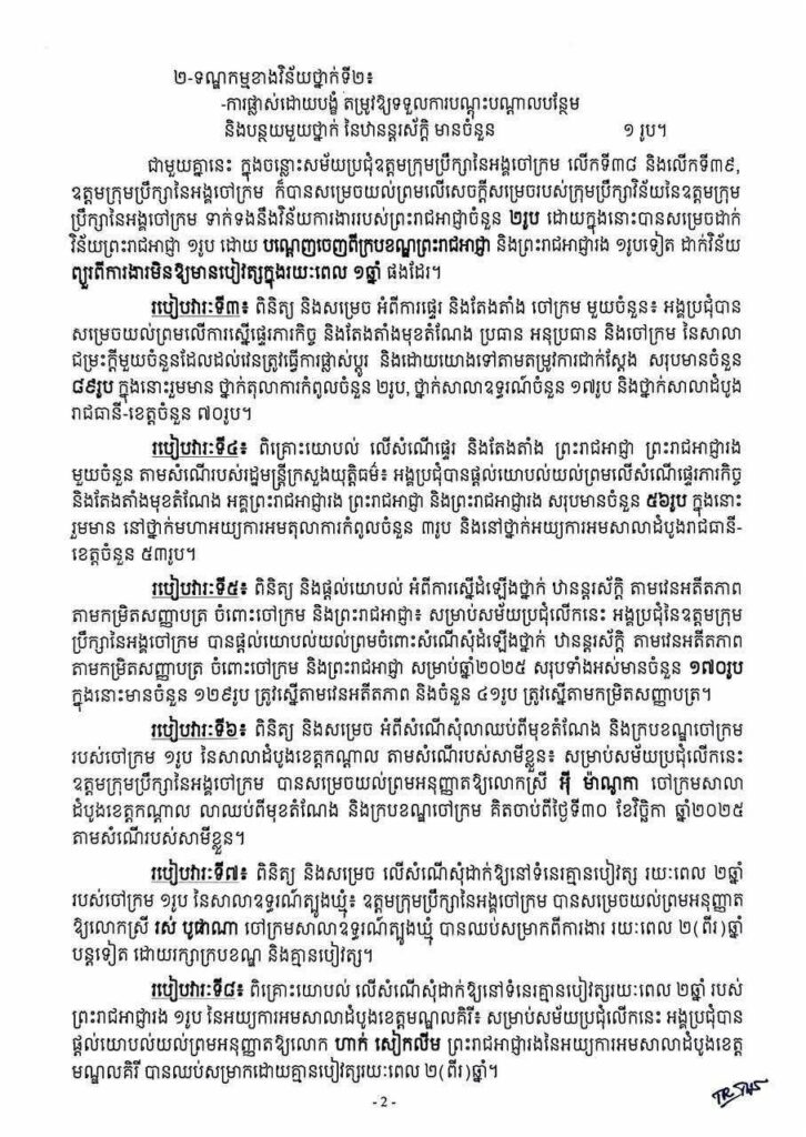 ព្រះរាជអាជ្ញា-ព្រះរាជអាជ្ញារង៥រូប និងចៅក្រម២២រូប ត្រូវបានរងទណ្ឌកម្មវិន័យ