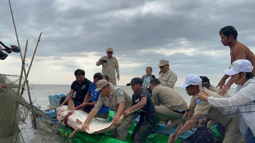 ត្រីរាជ មួយក្បាលទម្ងន់ជិត ១០០ គីឡូក្រាម ប្រវែង២១៦សង់ទីម៉ែត្រ ត្រូវបានលែងចូលក្នុងធម្មជាតិវិញ