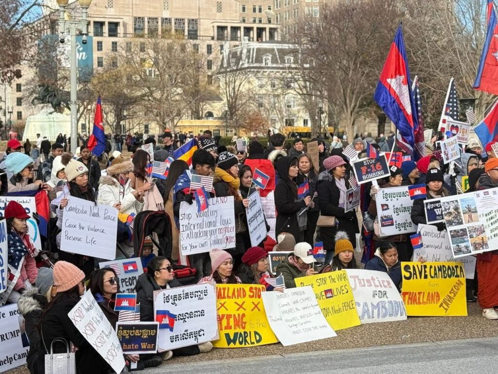 ពលរដ្ឋខ្មែរមកពីបណ្ដារដ្ឋនានានៅអាម៉េរិកបានបន្តការធ្វើ បាតុកម្មដោយសន្តិវិធី នៅមុខសេតវិមានប្រធានាធិបតី អាម៉េរិក នៅថ្ងៃទី២១ ខែធ្នូ ឆ្នាំ២០២៥