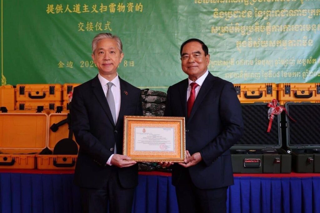 ធម៌ក្នុងវិស័យសកម្មភាពមីននៅកម្ពុជា ដែលសម្ភារទាំងនោះ រួមមានឧបករណ៍រាវរកលោហៈ ឧបករណ៍និងសម្ភារចាំបាច់ និងរថយន្ត។ អត្ថបទដោយ៖ cambodia-nation-media
