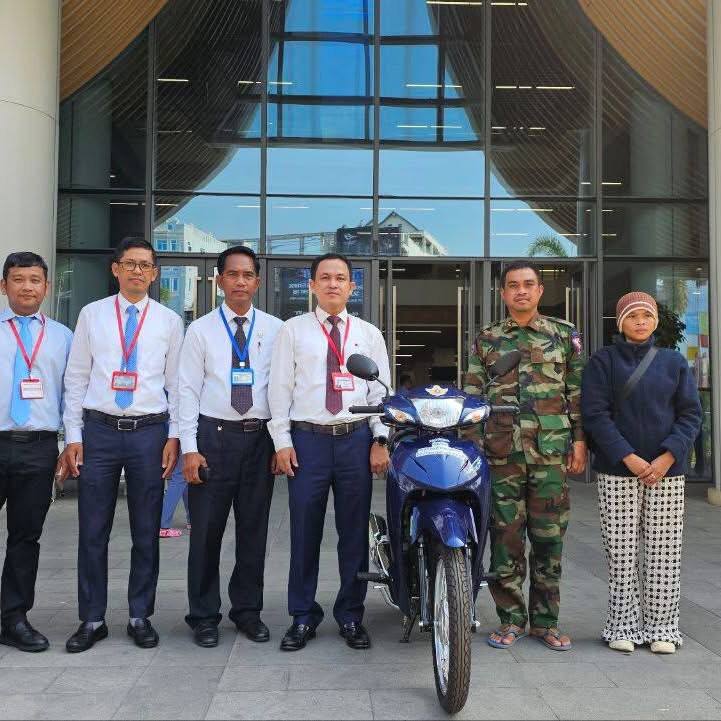 នាំយកម៉ូតូ ១គ្រឿង ដែលជាអំណោយដ៏ថ្លៃថ្លារបស់ «សម្តេចធិបតី» និង «លោកជំទាវបណ្ឌិត» ប្រគល់ជូន វីរកងទ័ព "អែម សុភក្រ្តា" អាយុ ៣៥ឆ្នាំ រស់នៅស្រុកជុំគិរី ខេត្តកំពត ដែល