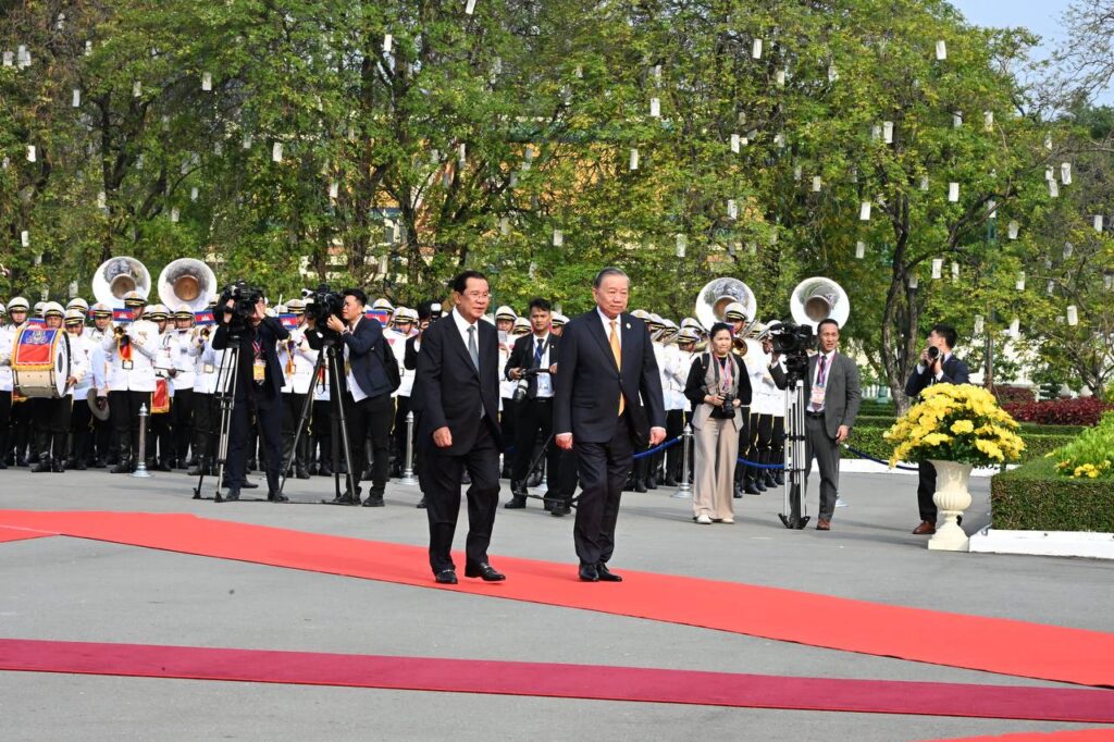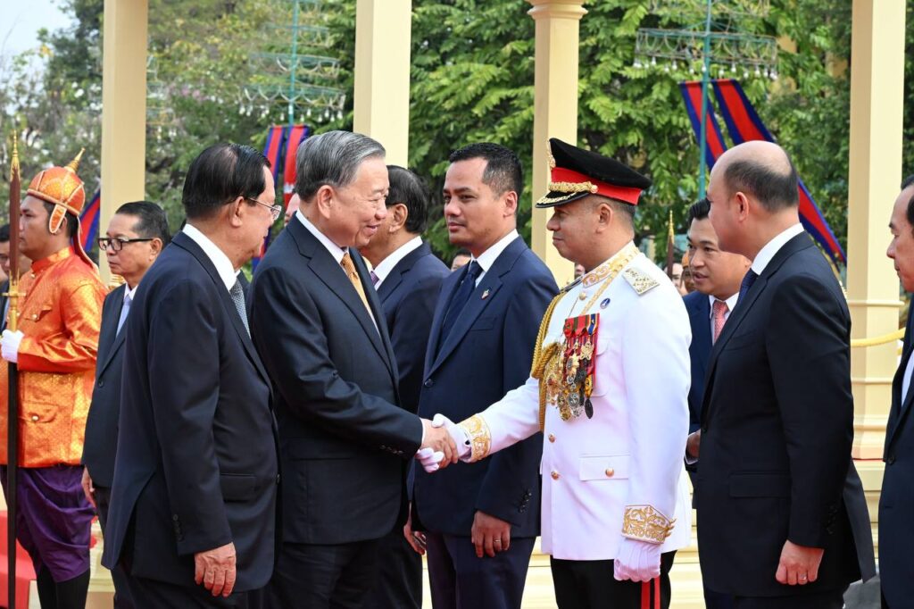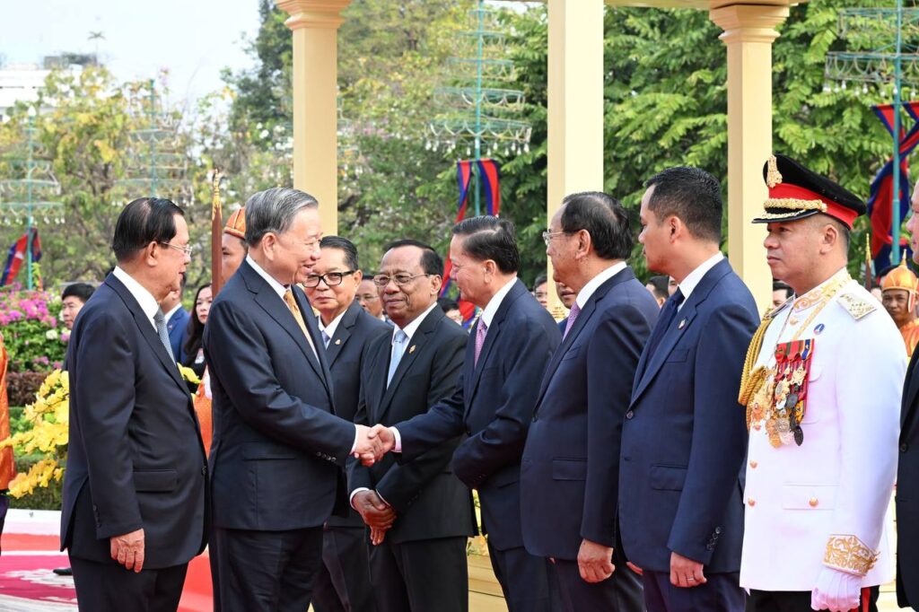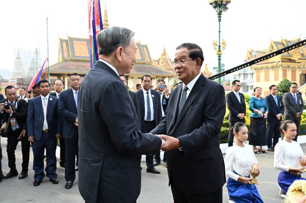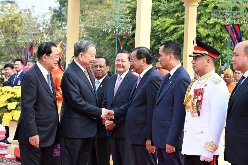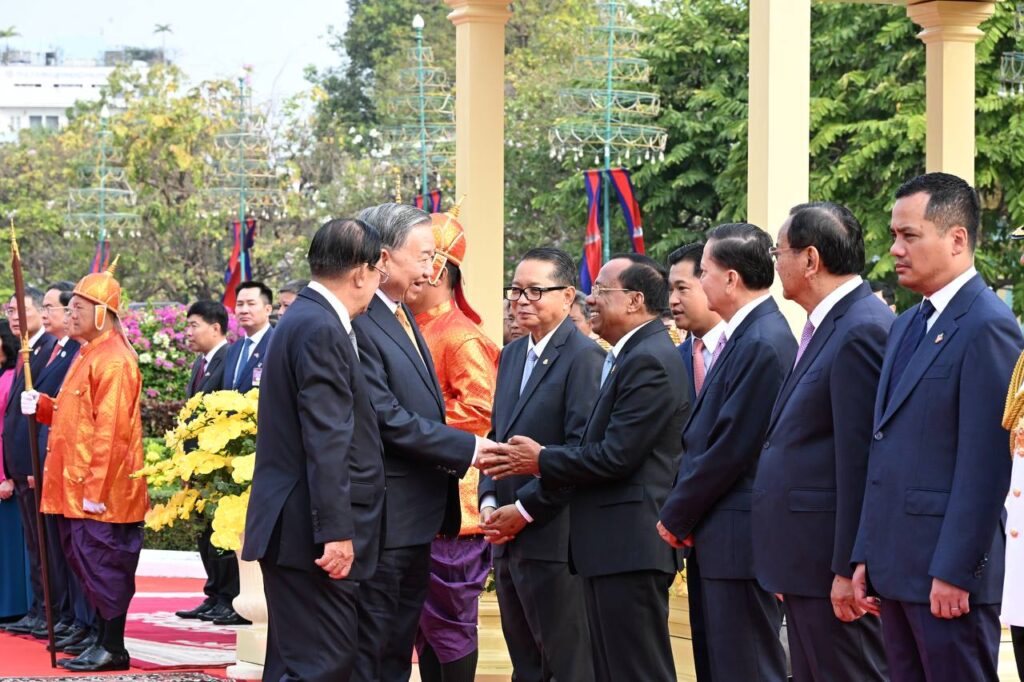 សម្ដេចតេជោ ហ៊ុន សែន អញ្ជើញជាព្រះរាជតំណាងដ៏ខ្ពង់ខ្ពស់ព្រះមហាក្សត្រ ទទួលបដិសណ្ឋារកិច្ចស្វាគមន៍ ឯកឧត្តមអគ្គលេខាធិការបក្សកុម្មុយនិស្តរដ្ឋវៀតណាម មកបំពេញទស្សនកិច្ចផ្លូវរដ្ឋនៅកម្ពុជា