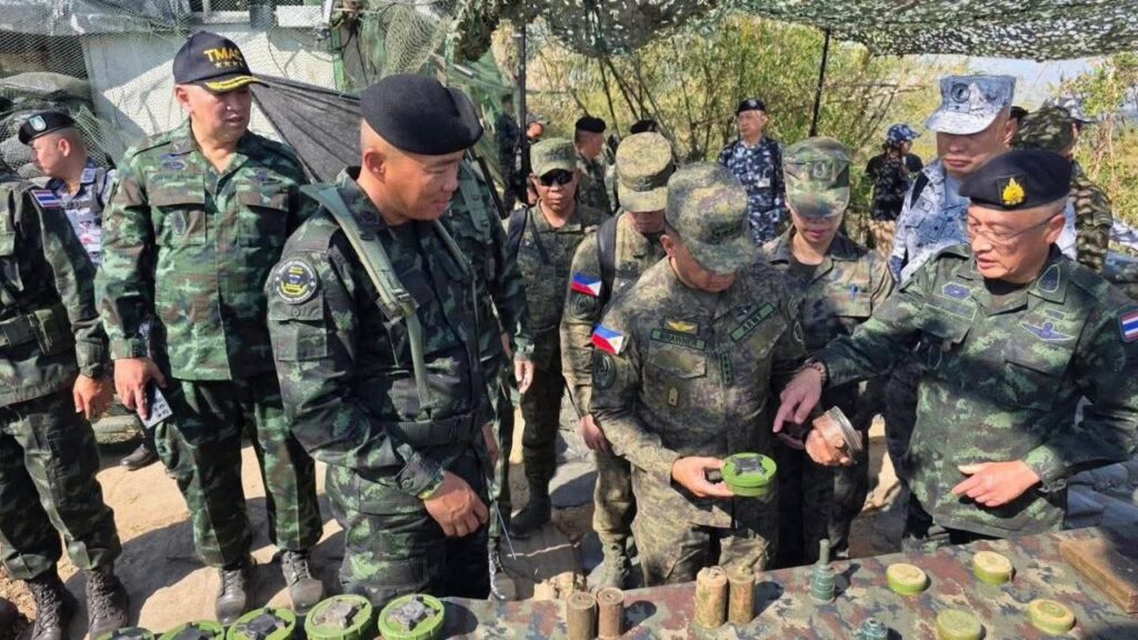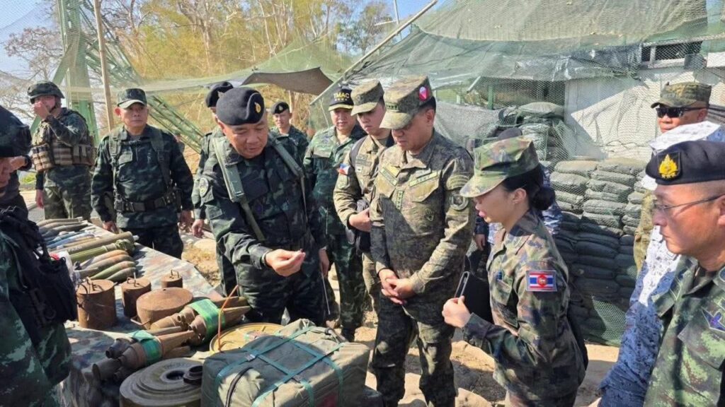 អំពីប្រតិបត្តិការផ្ទុះ និងការត្រួតពិនិត្យដីនៅមូលដ្ឋាន ប្រតិបត្តិការភូម៉ាខាវ ខេត្តកន្ត្រាក់ និងខេត្តស៊ីសាកេត ប្រទេសថៃ ជាមួយឧត្តមសេនីយ៍ Rangphirat Yamkasen ជានាយក មជ្ឈមណ្ឌលប្រតិបត្តិការគ្រាប់បែកជាតិចូលរួមជាមួយក្រុមជាមួយឧត្តមសេនីយ៍ Surakit Kalnet ជាមេបញ្ជាការ កងទ័ពជើងគោក។