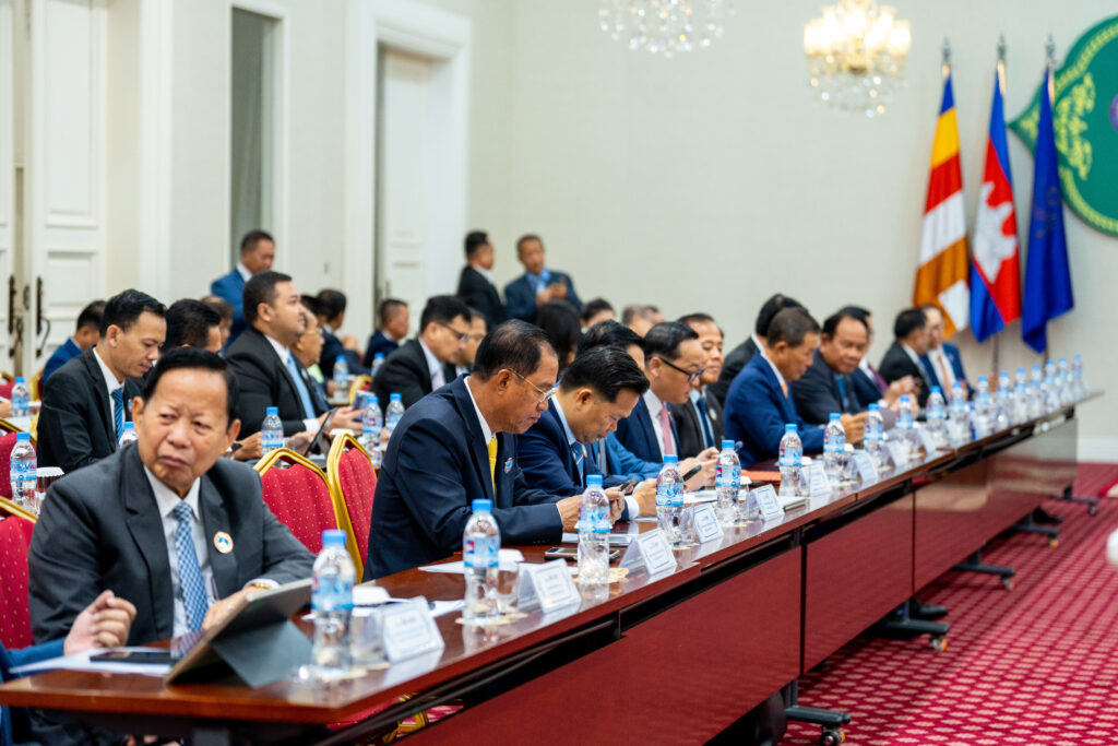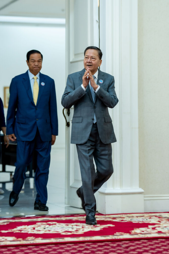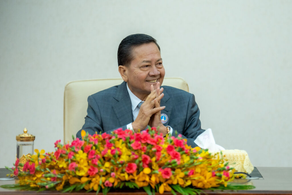 សេនាបតីតេជោ ហ៊ុន សែន ប្រធានព្រឹទ្ធសភា ជាស្ថាបិន និងជាប្រធានសមាគមអតីតយុទ្ធជននិងនិវត្តជន នៅក្នុងឱកាស អញ្ចើញជាអធិបតីភាពខ្ពង់ខ្ពស់ ក្នុងពិធីប្រកាសសមាសភាព គណកម្មាធិការ សមាគមអតីតយុទ្ធជន និងនិវត្តជនកម្ពុជា តាមវិស័យ ចំនួន ៣២[ក្រសួង'ស្ថាប័ន] ហើយដែលពិធីនេះ ធ្វើឡើងនាព្រឹកថ្ងៃទី២០ខែកុម្ភះឆ្នាំ២០២៦ នៅវិមានសន្តិភាព នៃទីស្តីការនាយករដ្ឋមន្ត្រី ក្នុងរាជធានីភ្នំពេញ។