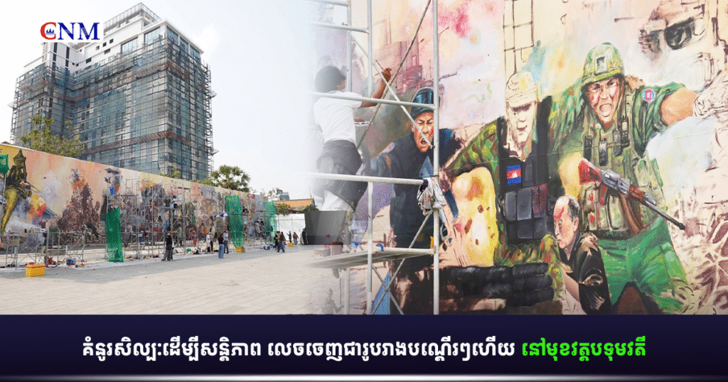 គំនូរសិល្បៈដើម្បីសន្តិភាព លេចចេញជារូបរាងបណ្តើរៗហើយ នៅមុខវត្តបទុមវតី