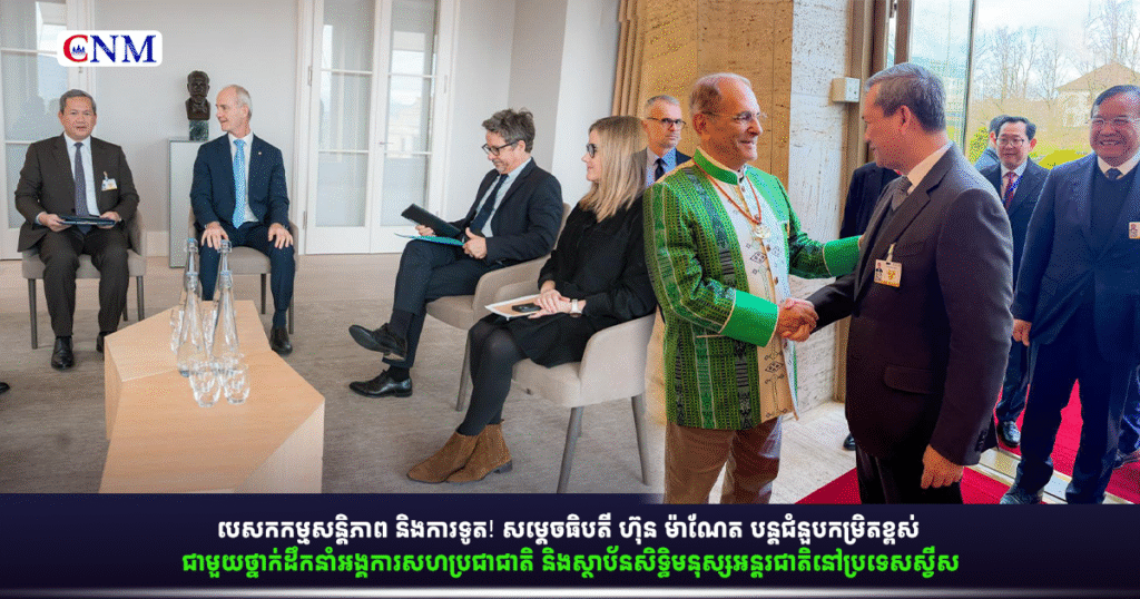 បេសកកម្មសន្តិភាព និងការទូត! សម្ដេចធិបតី ហ៊ុន ម៉ាណែត បន្តជំនួបកម្រិតខ្ពស់ ជាមួយថ្នាក់ដឹកនាំអង្គការសហប្រជាជាតិ និងស្ថាប័នសិទ្ធិមនុស្សអន្តរជាតិនៅប្រទេសស្វីស