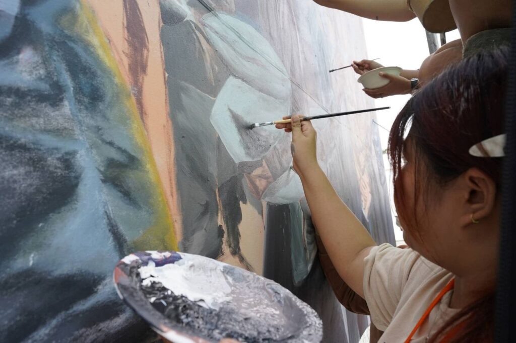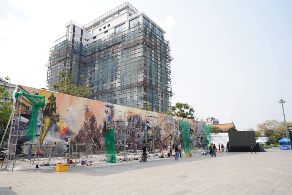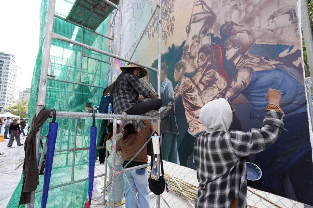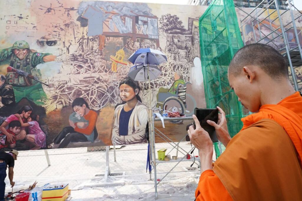 គំនូរសិល្បៈដើម្បីសន្តិភាព លេចចេញជារូបរាងបណ្តើរៗហើយ នៅមុខវត្តបទុមវតី