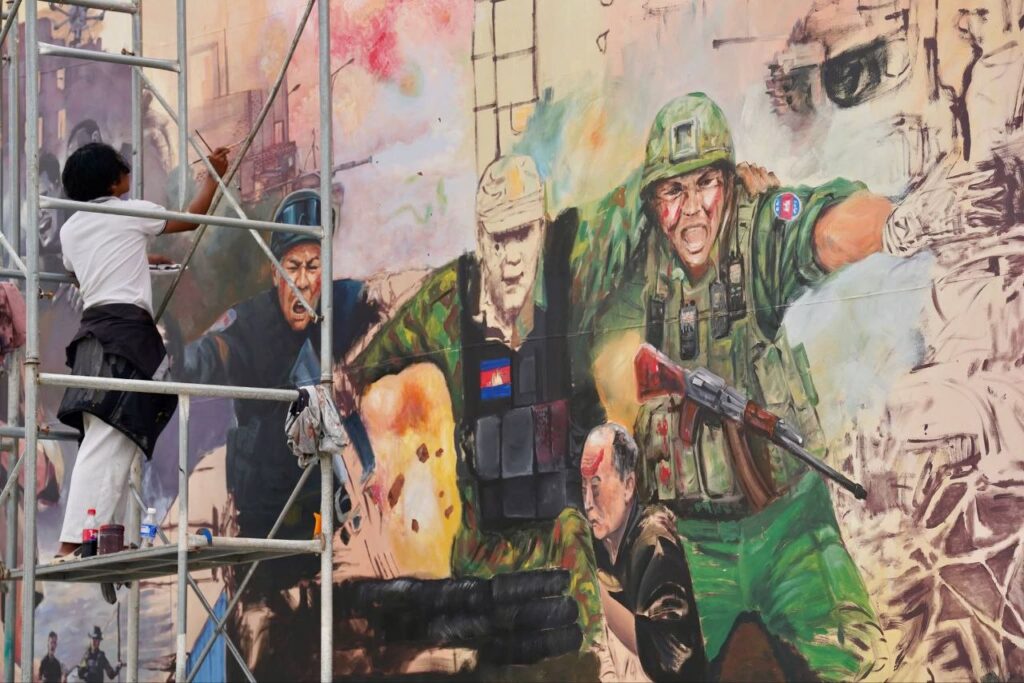 ផ្ទាំងគំនូរសិល្បៈដើម្បីសន្តិភាពនេះ គឺដើម្បីបង្ហាញការពិតអំពីទុក្ខវេទនារបស់ជនសុីវិល និងការបំផ្លិចបំផ្លាញហេដ្ឋារចនាសម្ព័ន្ធ និងបេតិកភណ្ឌរបស់កម្ពុជា បន្ទាប់ពីសង្គ្រាមឈ្លានពានរបស់ថៃ មកលើដែនអធិបតេយ្យភាពកម្ពុជា នាពេលកន្លងមក៕ អត្ថបទដោយ៖ cambodia-nation-media