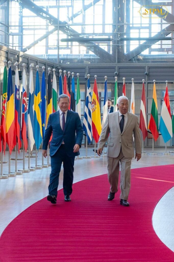 ប្រធានក្រុមប្រឹក្សាអឺរ៉ុប និងនាយករដ្ឋមន្ត្រីកម្ពុជា ក៏បានបញ្ជាក់ជាថ្មីនូវមហិច្ឆតារួម សម្រាប់ទំនាក់ទំនងសហភាពអឺរ៉ុប-អាស៊ានឱ្យកាន់តែរឹងមាំ និងសារៈសំខាន់នៃការគោរពច្បាប់អន្តរជាតិ រួមទាំងបូរណភាពទឹកដីផងដែរ។