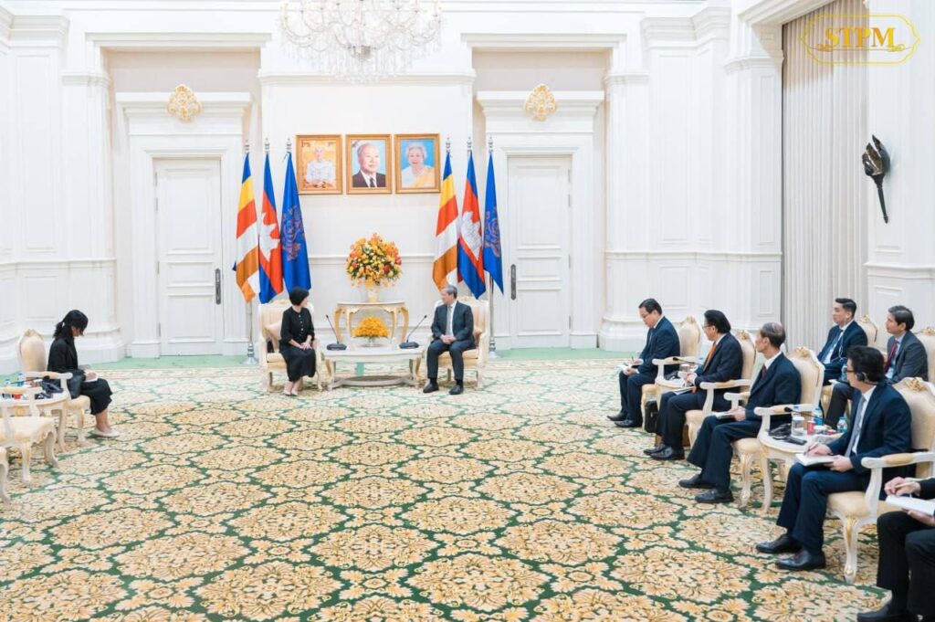 ពាក់ព័ន្ធនឹងបញ្ហាព្រំដែនកម្ពុជា-ថៃ, សម្ដេចធិបតីក៏បានជម្រាបជូនលោកជំទាវអំពីការវិវត្តថ្មីៗនៃស្ថានការណ៍ជម្លោះព្រំដែន កម្ពុជា-ថៃ និងបានសង្កត់ធ្ងន់អំពីការប្ដេជ្ញាចិត្ត ក៏ដូចជាជំហររបស់កម្ពុជានៅក្នុងការបន្តប្រកាន់យកការដោះស្រាយបញ្ហាព្រំដែនដោយសន្តិវិធី ផ្អែកលើច្បាប់អន្តរជាតិ អនុសញ្ញា សន្ធិសញ្ញា និងកិច្ចព្រមព្រៀងទ្វេភាគីដែលមានស្រាប់រវាងប្រទេសទាំងពីរ៕ អត្ថបទដោយ៖ cambodia-nation-media