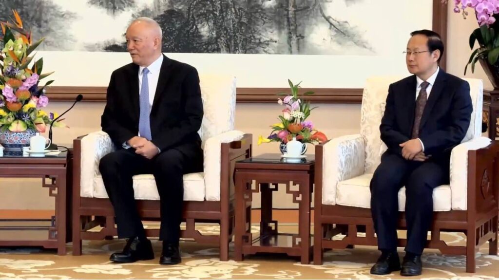 ព្រះរាជសវនាការនេះ ត្រូវបានរៀបចំឡើងយ៉ាងសមរម្យ និងស្និទ្ធស្នាលជាទីបំផុត នៅវិមានរដ្ឋដាយយូតៃ (Diaoyutai State Guesthouse) ក្នុងរដ្ឋធានីប៉េកាំង។ ក្នុងឱកាសដ៏វិសេសវិសាលនោះ ឯកឧត្តម Cai Qi បានសម្តែងនូវគារវភក្តី និងសេចក្តីសោមនស្សរីករាយជាខ្លាំង ដែលបានចូលក្រាបបង្គំគាល់ព្រះអង្គទាំងទ្វេ។ ឯកឧត្តមបានបញ្ជាក់ពីជំហរឥតងាករេរបស់ប្រទេសចិន ក្នុងការបន្តពង្រឹងចំណងមិត្តភាពដែកថែប ក៏ដូចជាកិច្ចសហប្រតិបត្តិការត្បូងពេជ្ររវាងប្រទេសទាំងពីរឱ្យកាន់តែរឹងមាំ និងស៊ីជម្រៅបន្ថែមទៀត។