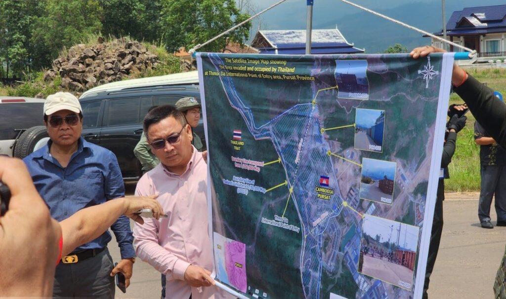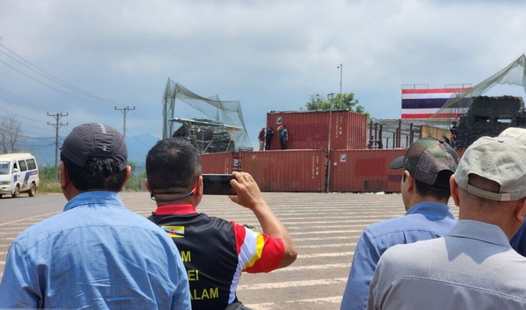 ប្រមុខការទូតកម្ពុជា នាំអង្គទូតទៅមើលទូកុងទីនើរ និងរបងបន្លាលួស ដែលយោធាថៃ ដាក់ពង្រាយនៅច្រកថ្មដា