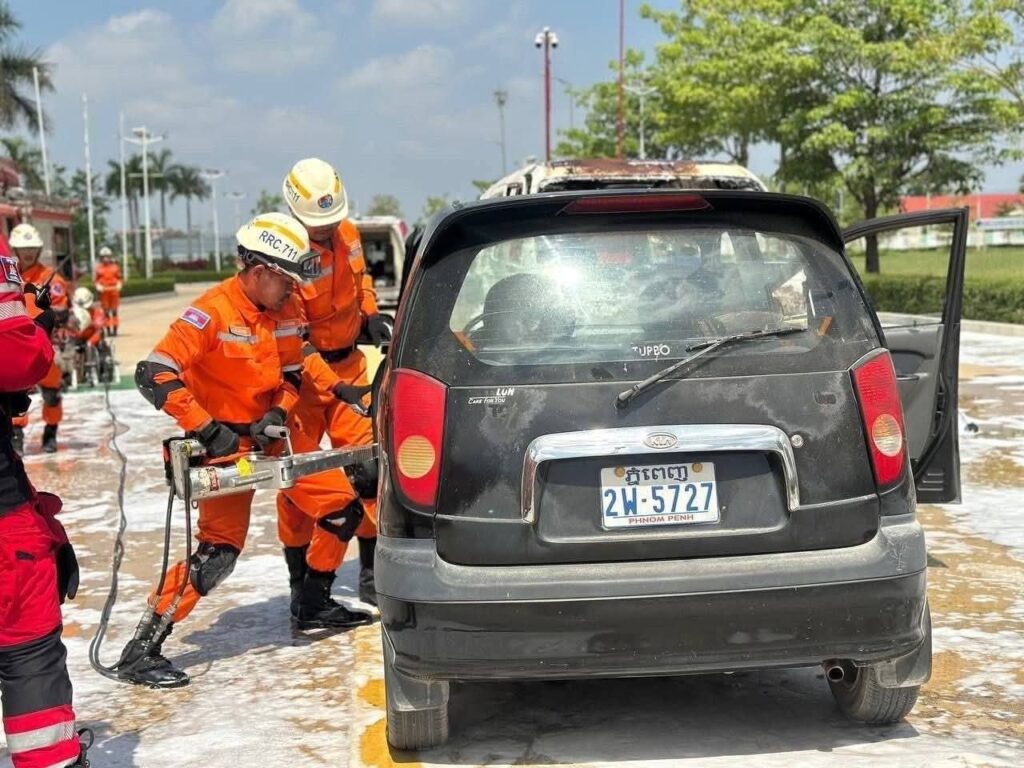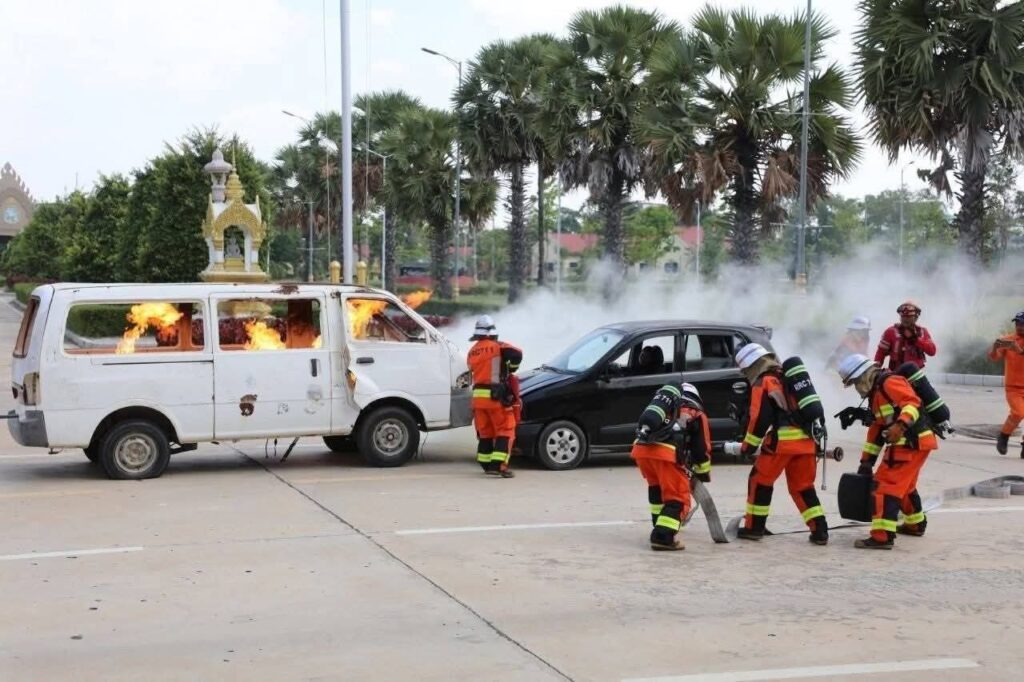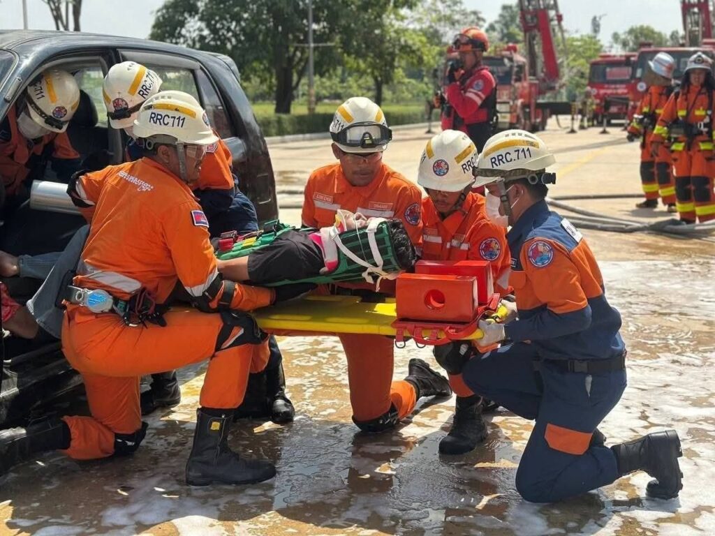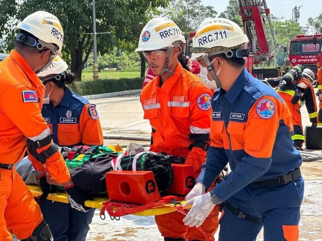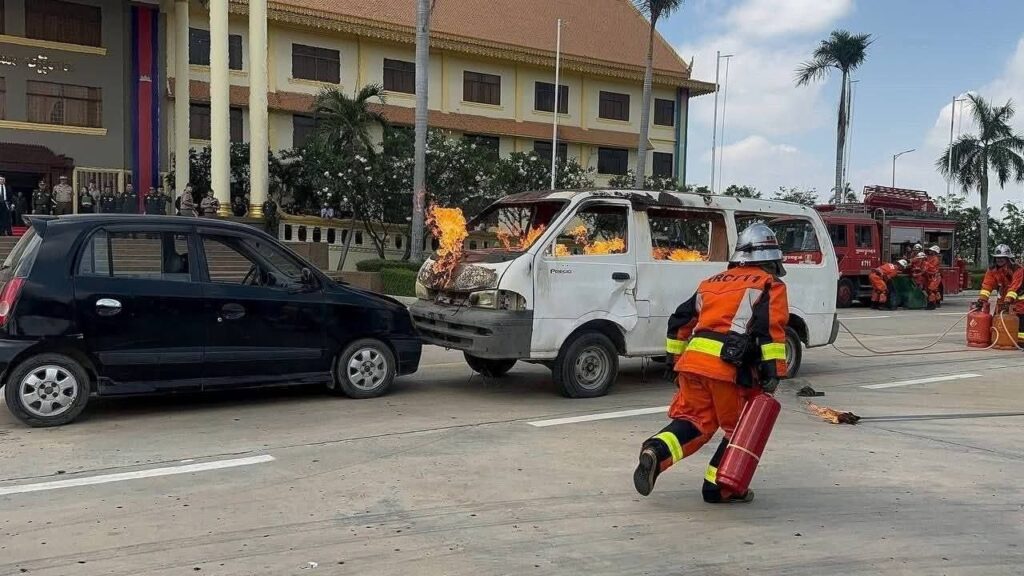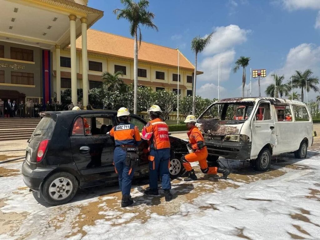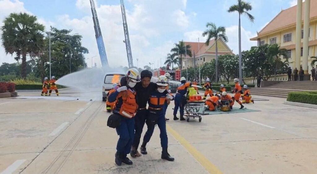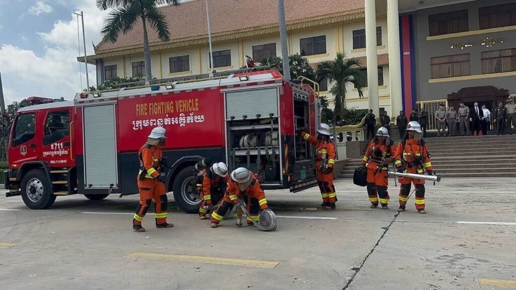កម្ពុជា បង្ហាញការហ្វឹកហាត់ ពន្លត់អគ្គិភ័យ និងសង្គ្រោះជូនប្រតិភូកងទ័ពសហរដ្ឋអាមេរិក