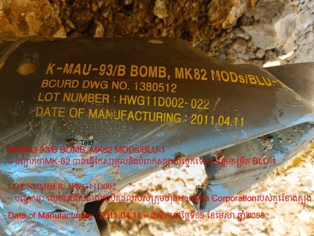 កម្លាំងជំនាញអង្គភាពCMAC បានប្រតិបត្តិការដោះបន្សាបគ្រាប់បែកទម្លាក់ពីយន្តហោះប្រភេទMK-82 ទម្ងន់ជាង២៣០គីឡូក្រាម