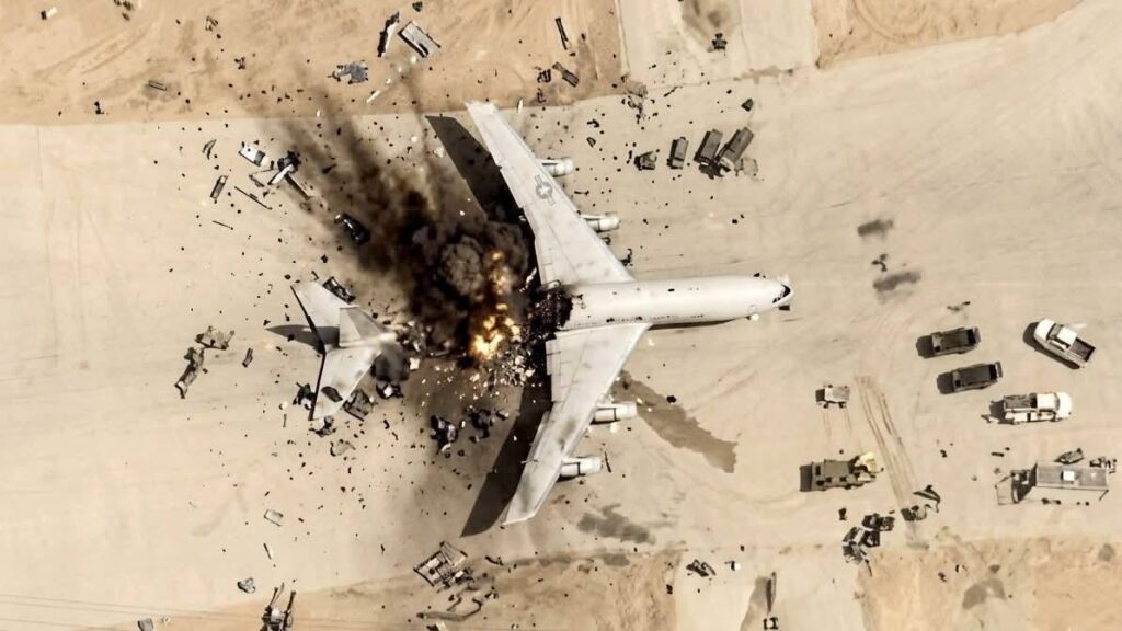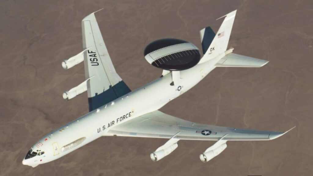 រូបភាពទាំងនេះបង្ហាញពីកម្ទេចកម្ទីយន្តហោះ Boeing E-3 Sentry airborne warning and control system (AWACS) ដែលត្រូវបានគេរាយការណ៍ថាត្រូវបានបំផ្លាញបន្ទាប់ពីការវាយប្រហាររបស់អ៊ីរ៉ង់លើមូលដ្ឋានទ័ពអាកាសព្រះអង្គម្ចាស់ស៊ុលតង់នៅថ្ងៃទី 27 ខែមីនា។