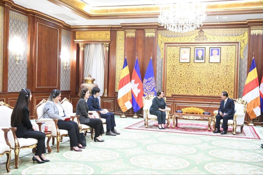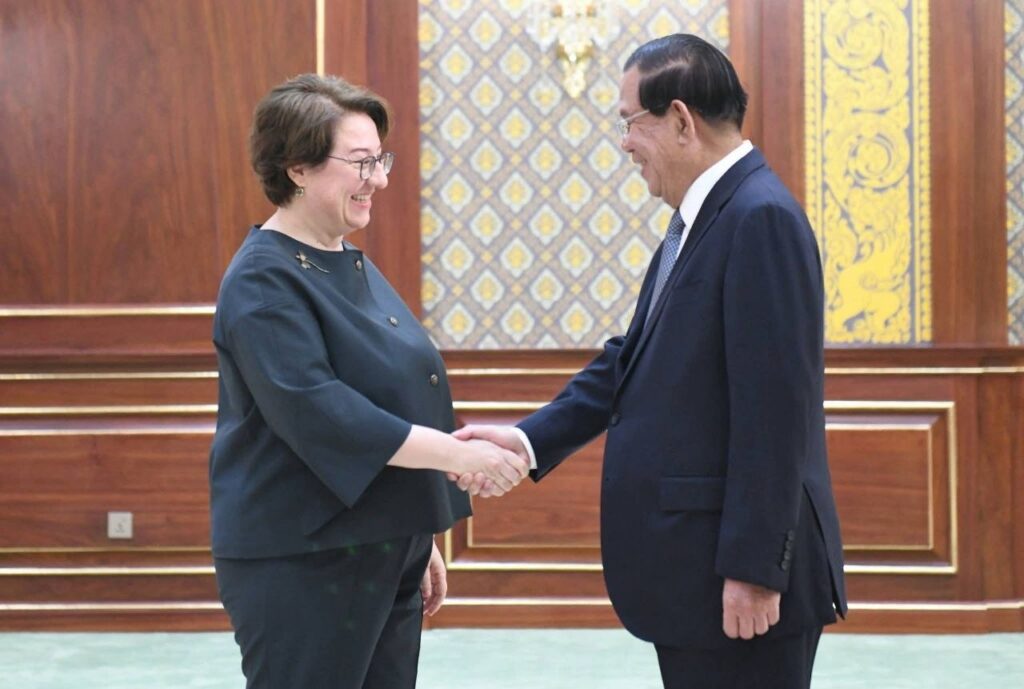 សម្ដេចអគ្គមហាសេនាបតីតេជោ ហ៊ុន សែន ប្រមុខរដ្ឋស្តីទី នៃព្រះរាជាណាចក្រកម្ពុជា អនុញ្ញ្ញាតជូន លោកជំទាវ Ulku Kocaefe ឯកអគ្គរដ្ឋទូតនៃសាធារណរដ្ឋតួកគីយ៉េ ដែលនឹងត្រូវបញ្ចប់បេសកកម្មការទូតប្រចាំព្រះរាជាណាចក្រកម្ពុជា ចូលជួបសម្តែងការគួរសម និងជម្រាបលា នៅវិមានសាមគ្គីភាព នៃព្រឹទ្ធសភា រាជធានីភ្នំពេញ នាព្រឹកថ្ងៃទី០៨ ខែមេសាឆ្នាំ២០២៦។ អត្ថបទដោយ៖ cambodia-nation-media